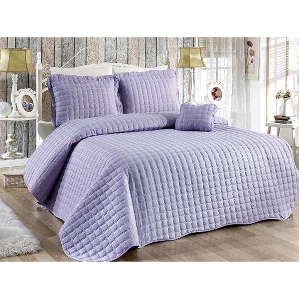 Cuvertura Brodata pat dublu cu 3 fete de perna, lila cod CVS3, Casa Sabry