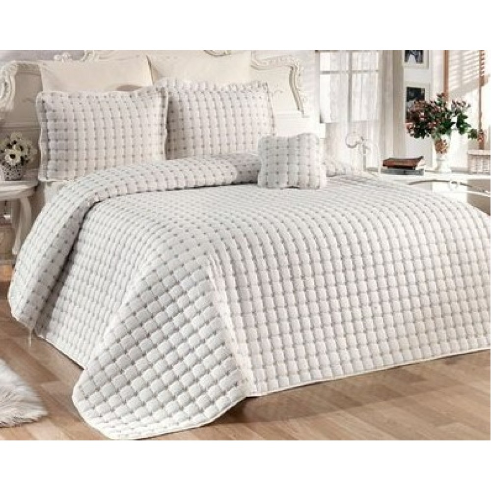 Cuvertura Brodata pat dublu cu 3 fete de perna, ivoire, Casa Sabry, cod produs: SBR-CVM-09
