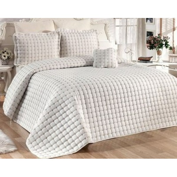 Cuvertura pentru pat dublu confectionata din microfibra soft matlasata cu vatelina siliconizata.
