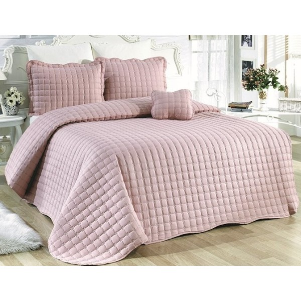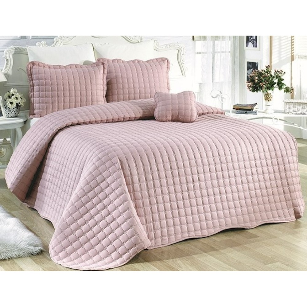 Cuvertura Brodata pat dublu cu 3 fete de perna, roz pudra, Casa Sabry, cod produs: SBR-CVM-01
