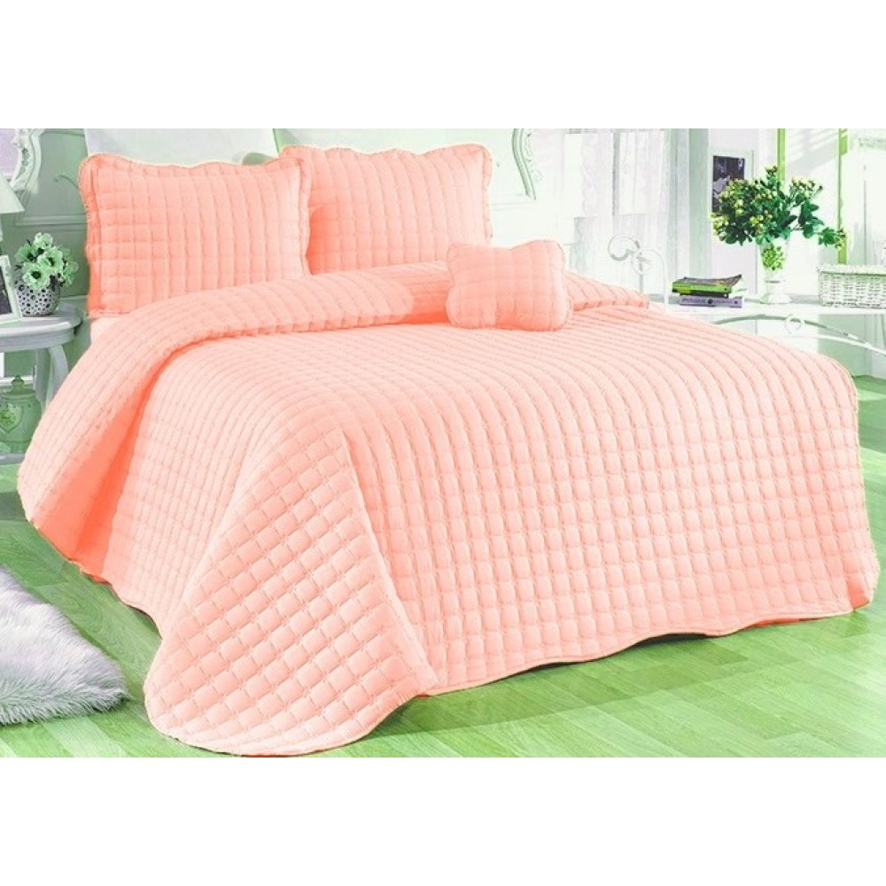 Cuvertura Brodata pat dublu cu 3 fete de perna, somon, Casa Sabry, cod produs: SBR-CVM-10