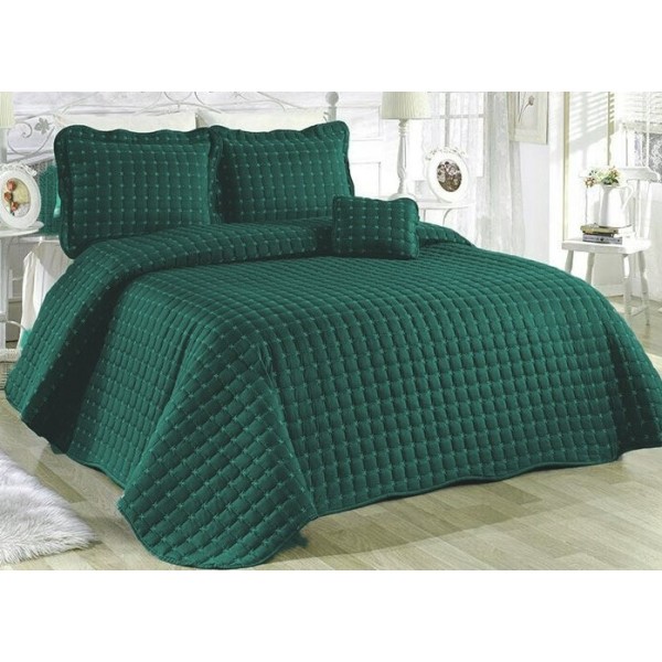 Cuvertura Brodata pat dublu cu 3 fete de perna, verde inchis, Casa Sabry, cod produs: SBR-CVM-06