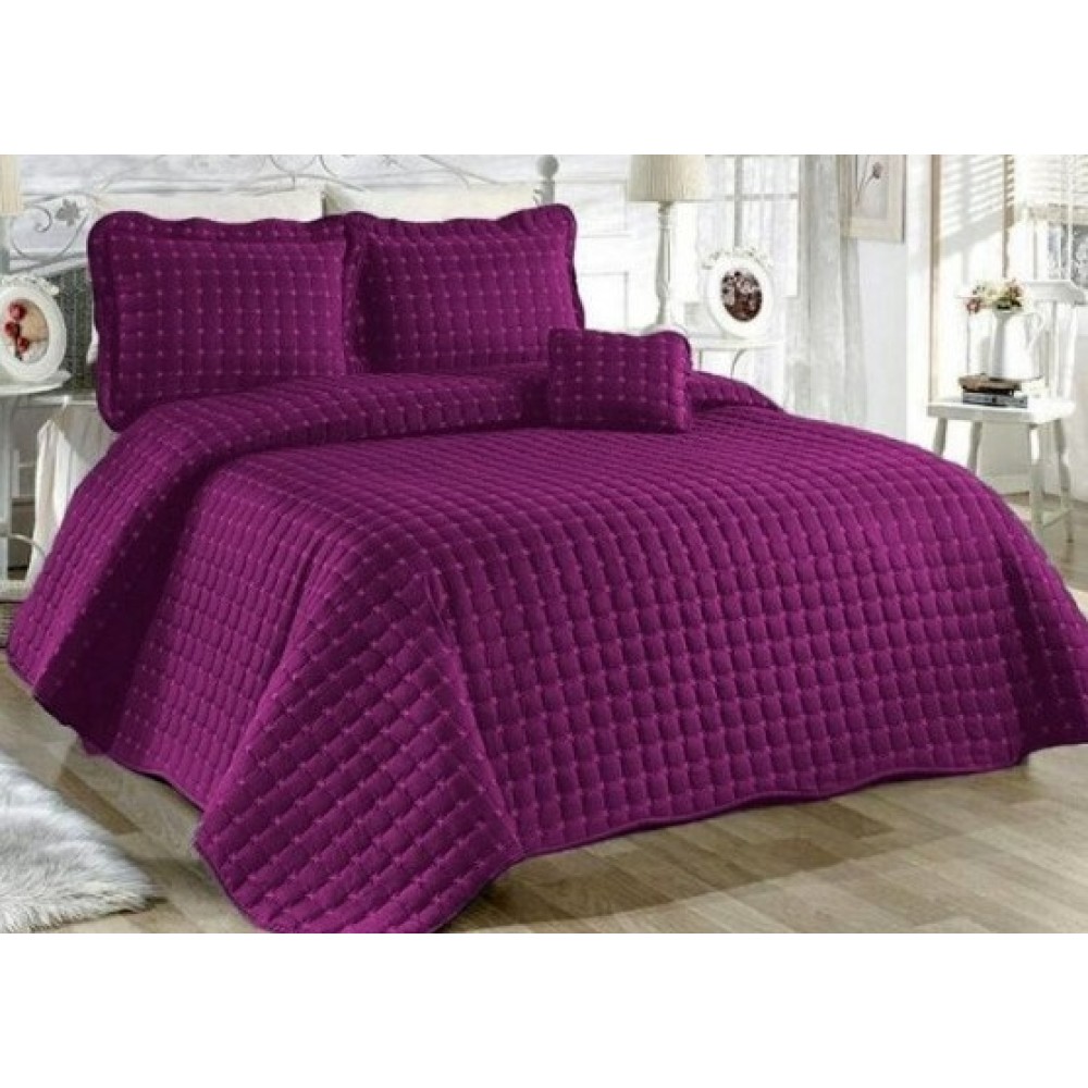 Cuvertura Brodata pat dublu cu 3 fete de perna, violet, Casa Sabry, cod produs: SBR-CVM-12