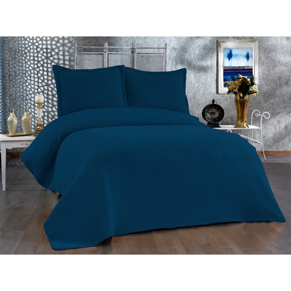 Cuvertura EVIUM pentru pat dublu cu 2 fete de perna, Albastru, Casa Sabry, cod produs: CVS90