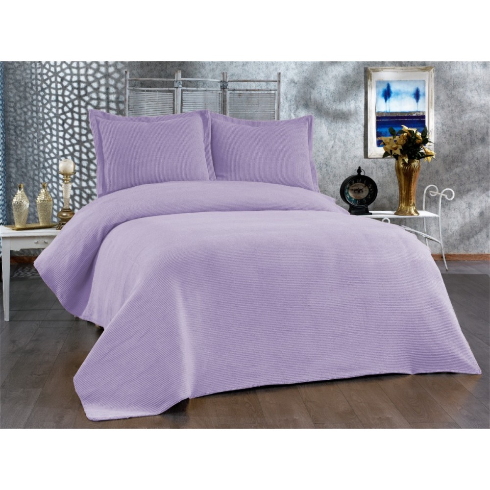 Cuvertura pentru pat dublu confectionata din bumbac, acril si fibre.