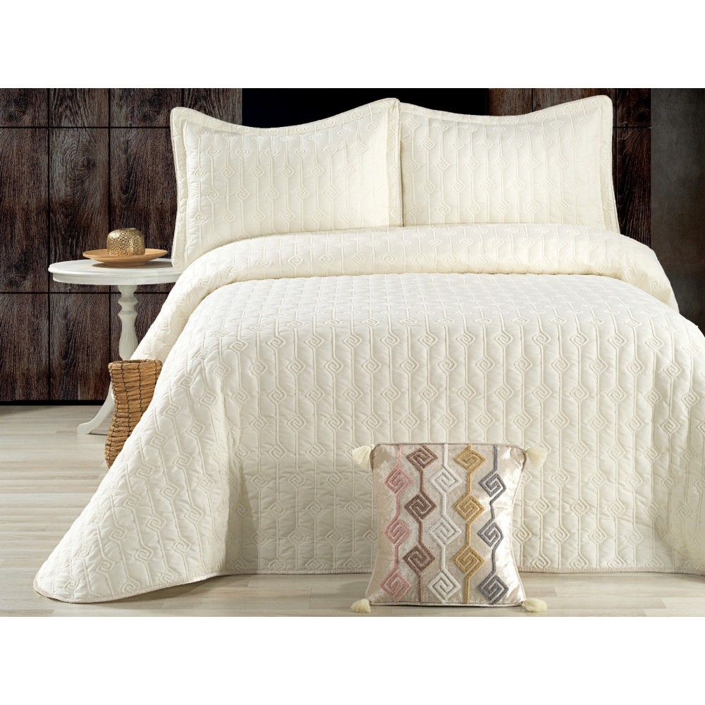 Cuvertura LORI pentru pat dublu cu smocuri brodate si 3 fete de perna, Alb, Casa Sabry, cod produs: CVS56