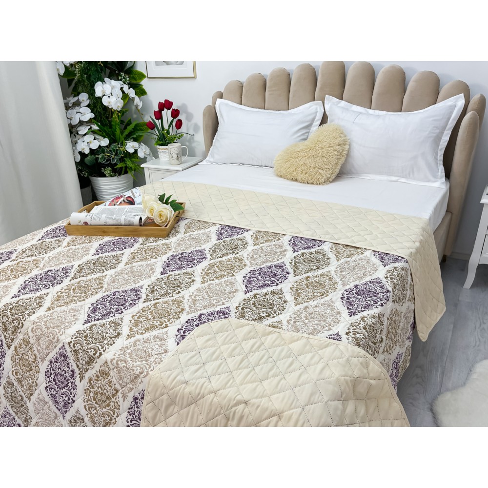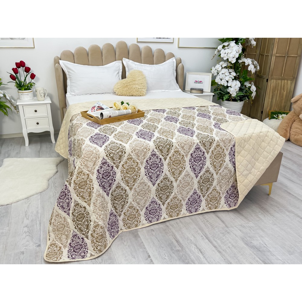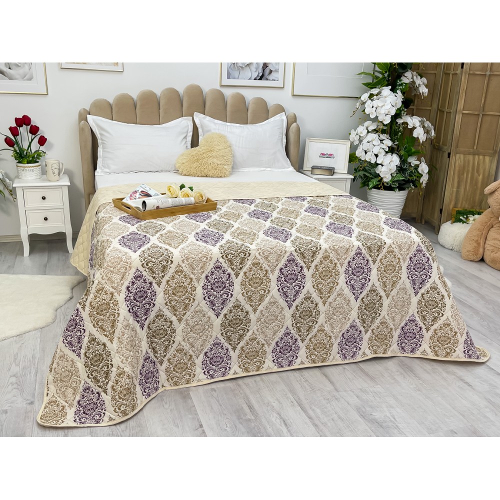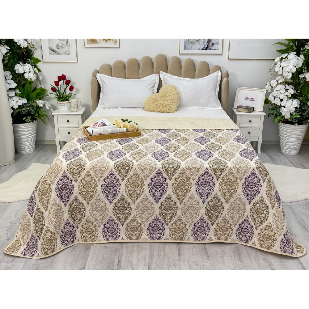 Cuvertura matlasata cu doua fete pentru pat dublu , 210x210, Auriu-Mov, oriental, Casa Sabry, cod produs: SBR-CVi110