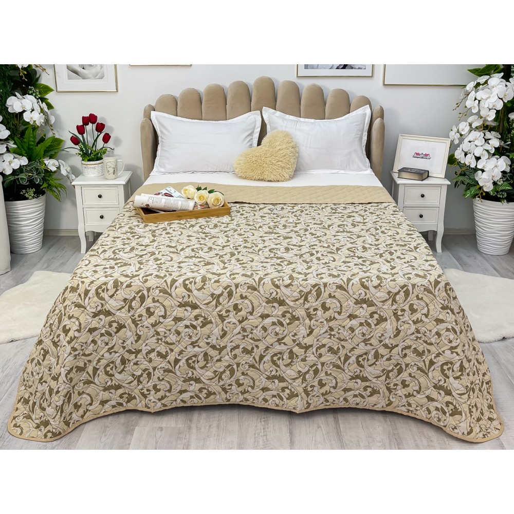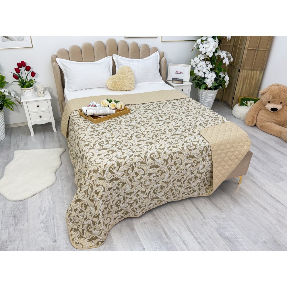 Cuvertura matlasata cu doua fete pentru pat dublu , 210x210, Bej, floral, Casa Sabry, cod produs: SBR-CVi113