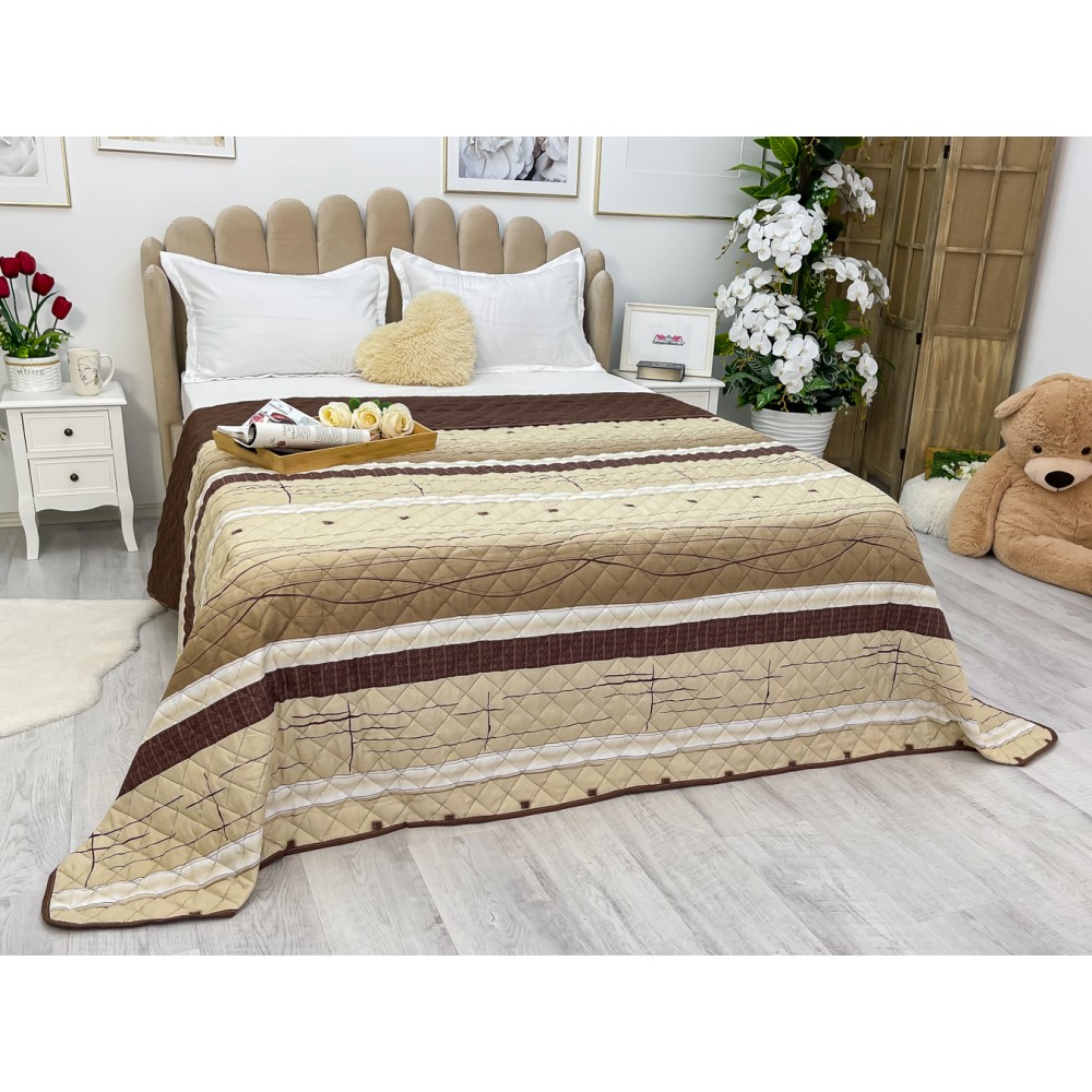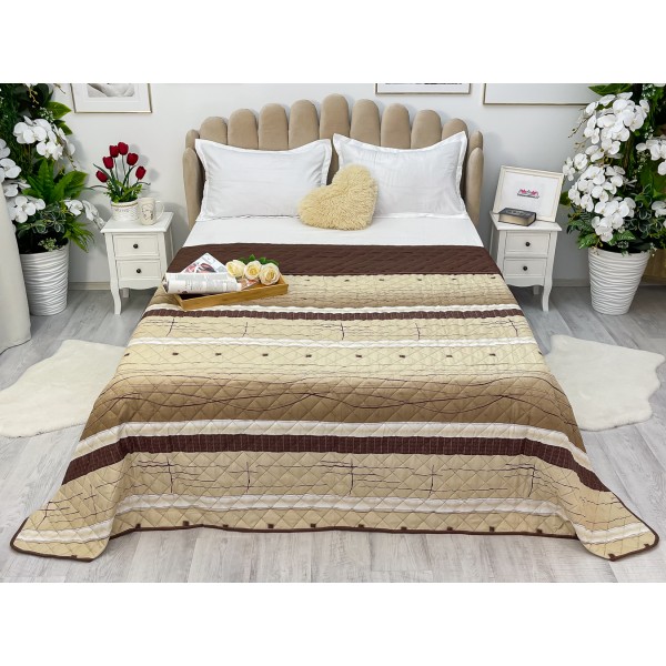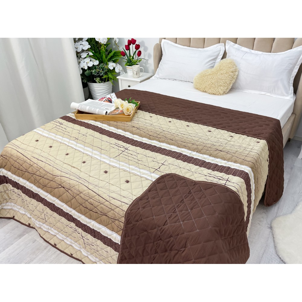 Cuvertura matlasata cu doua fete pentru pat dublu , 210x210, Bej-Maro, model clasic, Casa Sabry, cod produs: SBR-CVi112