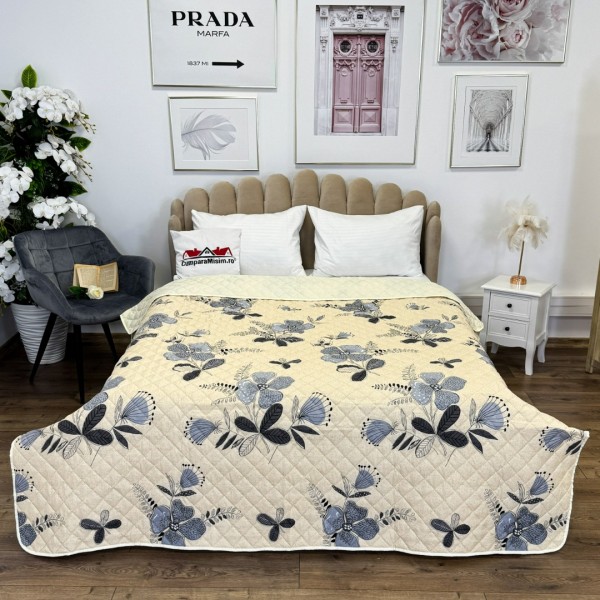 Cuvertura matlasata, confectionata din microfibra soft touch, cu umplutura din vatelina siliconica antialergenica.