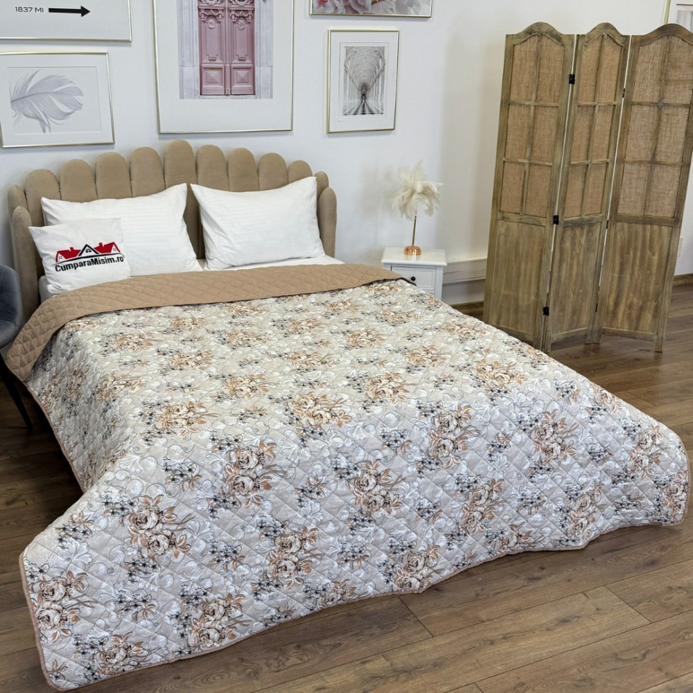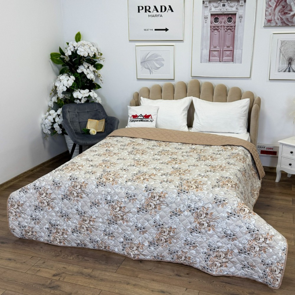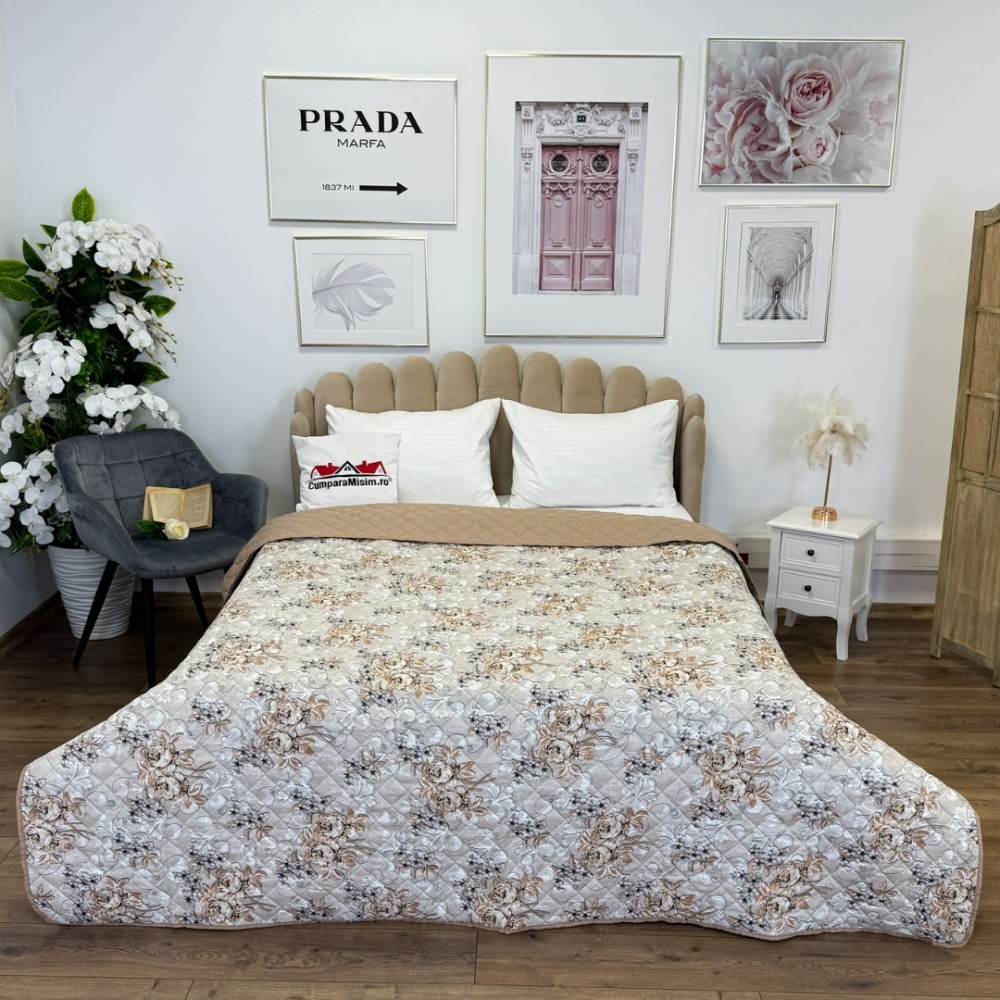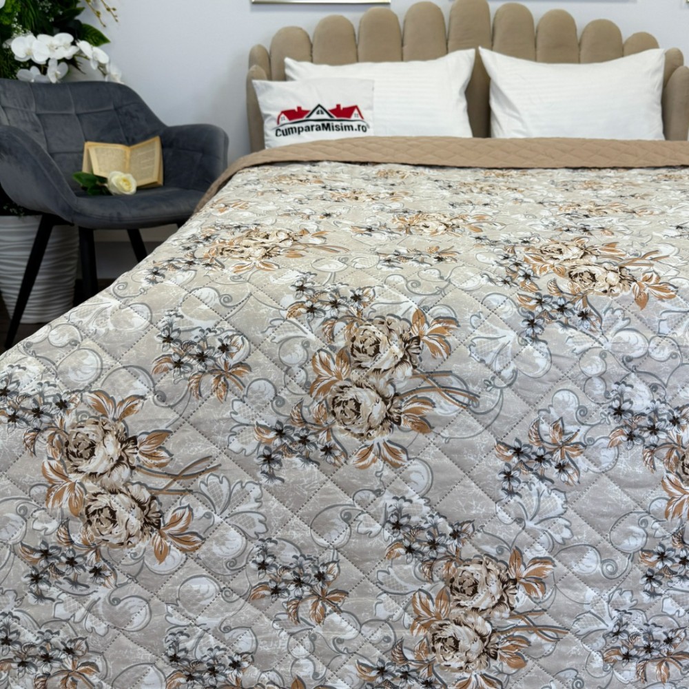 Cuvertura matlasata cu doua fete pentru pat dublu , 210x210, Grej, flori, Casa Sabry, cod produs: SBR-CVi118