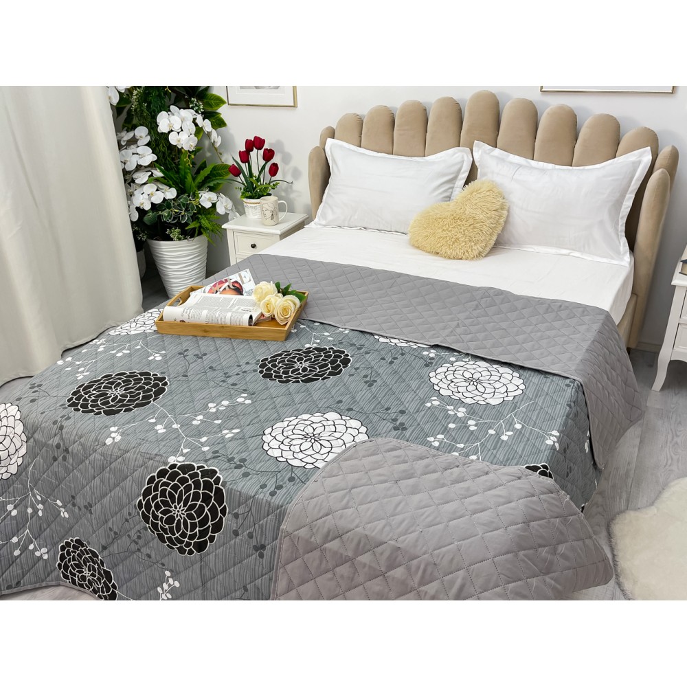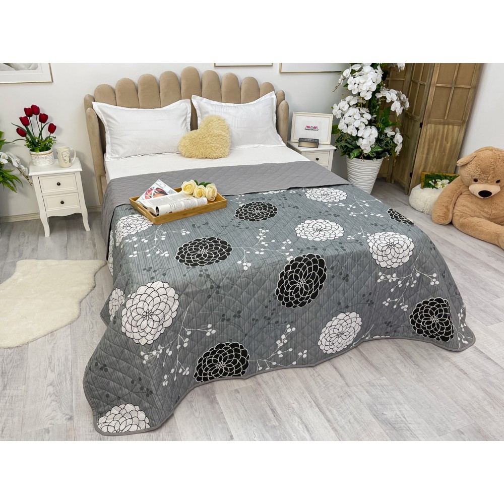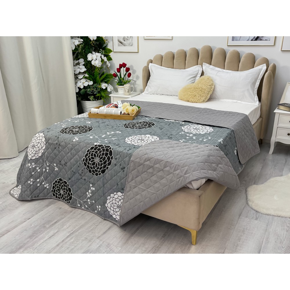Cuvertura matlasata cu doua fete pentru pat dublu , 210x210, Gri, flori, Casa Sabry, cod produs: CVI105