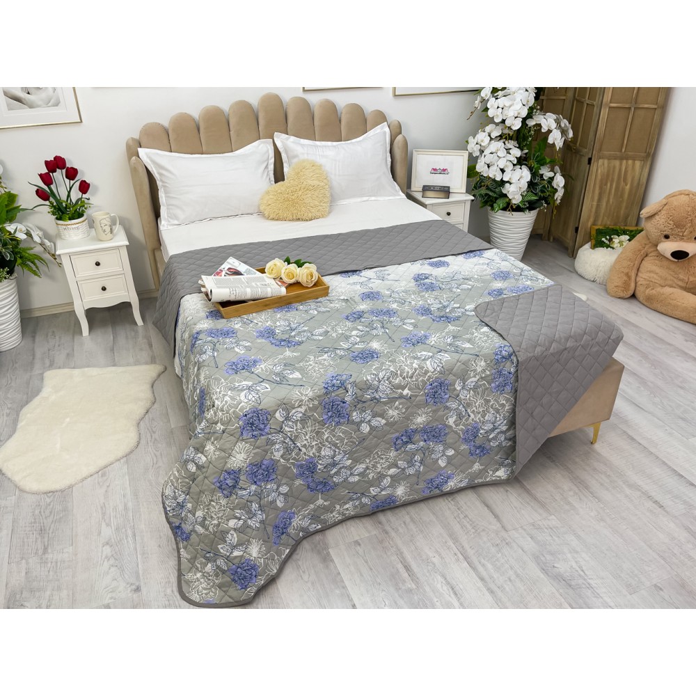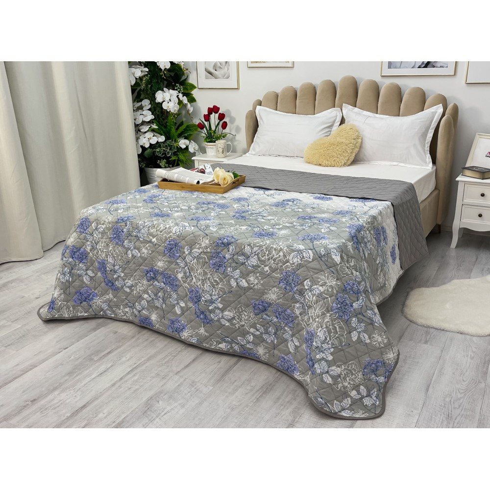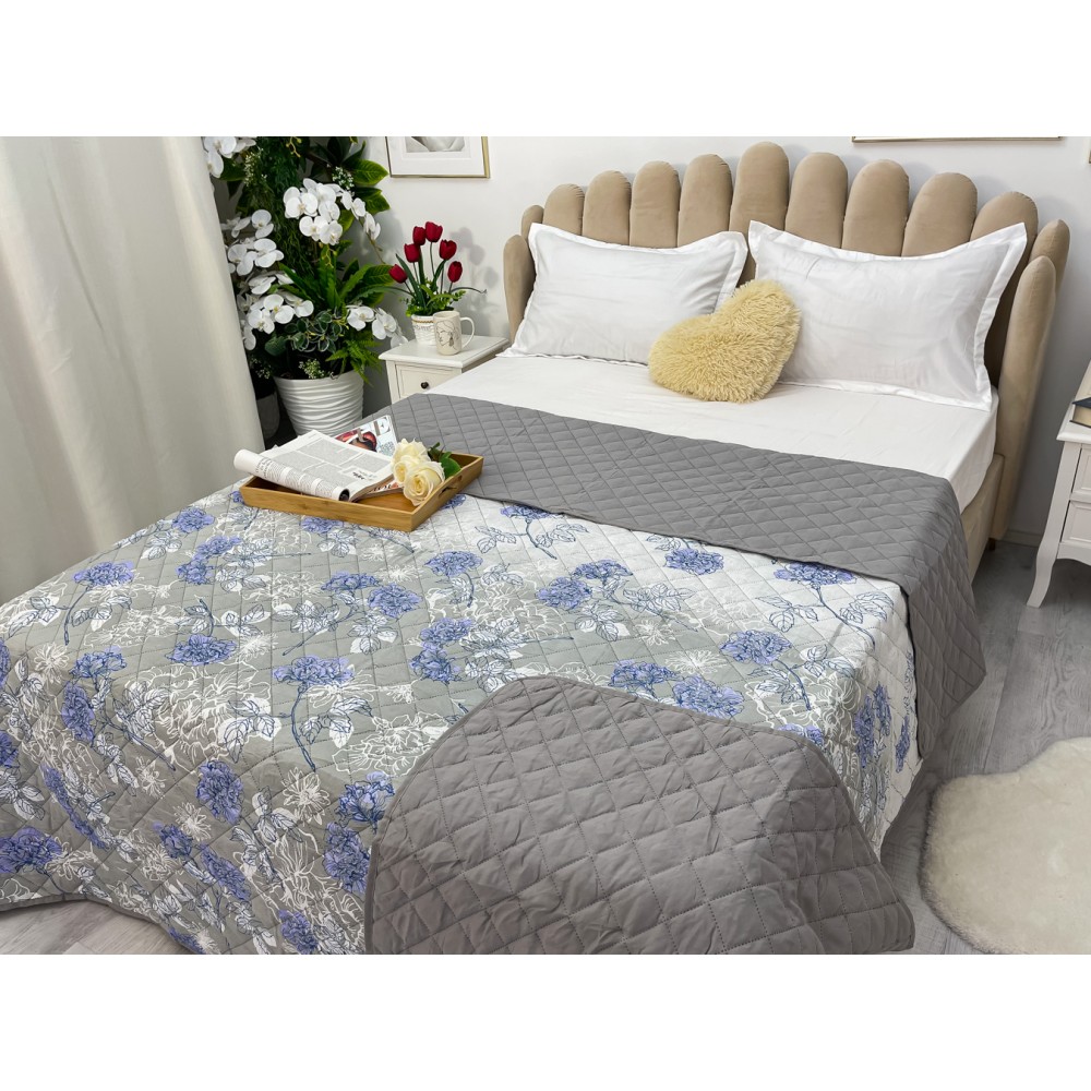 Cuvertura matlasata cu doua fete pentru pat dublu , 210x210, Gri-Albastru, flori, Casa Sabry, cod produs: SBR-CVi103