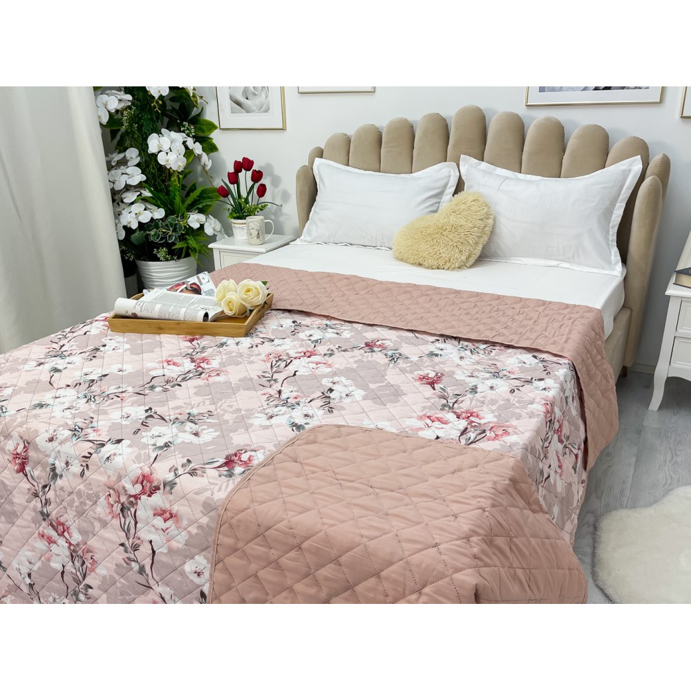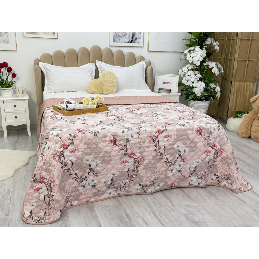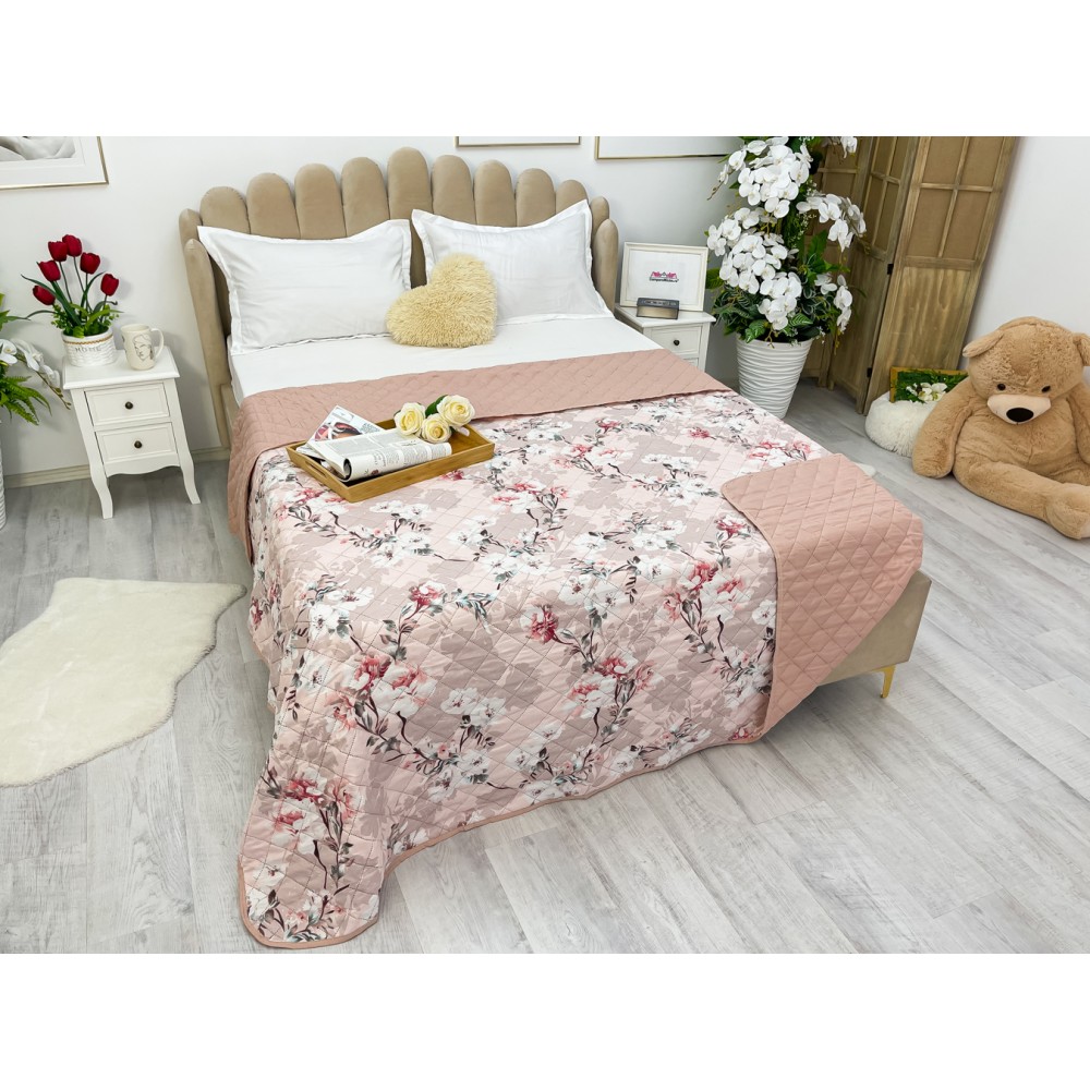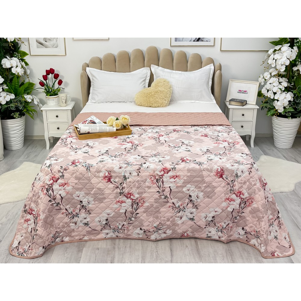 Cuvertura matlasata cu doua fete pentru pat dublu , 210x210, Roz pudra, flori, Casa Sabry, cod produs: CVI101