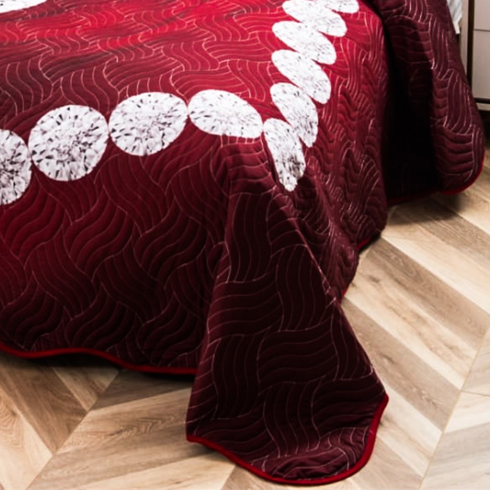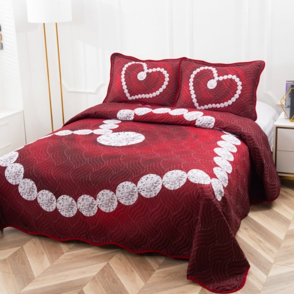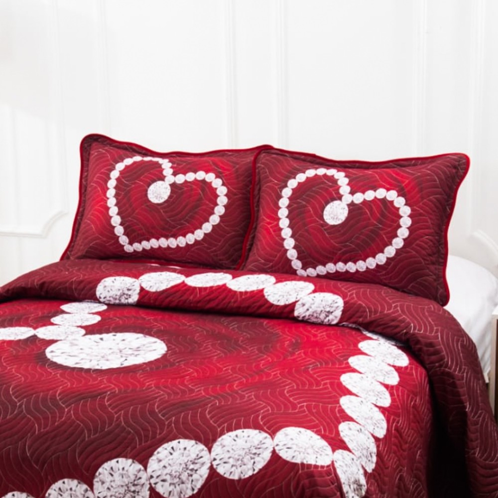 Cuvertură Matlasată, Pat Dublu, 230x250 cm, 3 Piese, Bumbac Finet Satinat, Imprimeu Digital, IDENTIC CU POZA, 2 Fețe de Pernă 60x80 cm, Grena, Inimioare, Diamante, Casa Minunata, cod produs: INS-CVD04