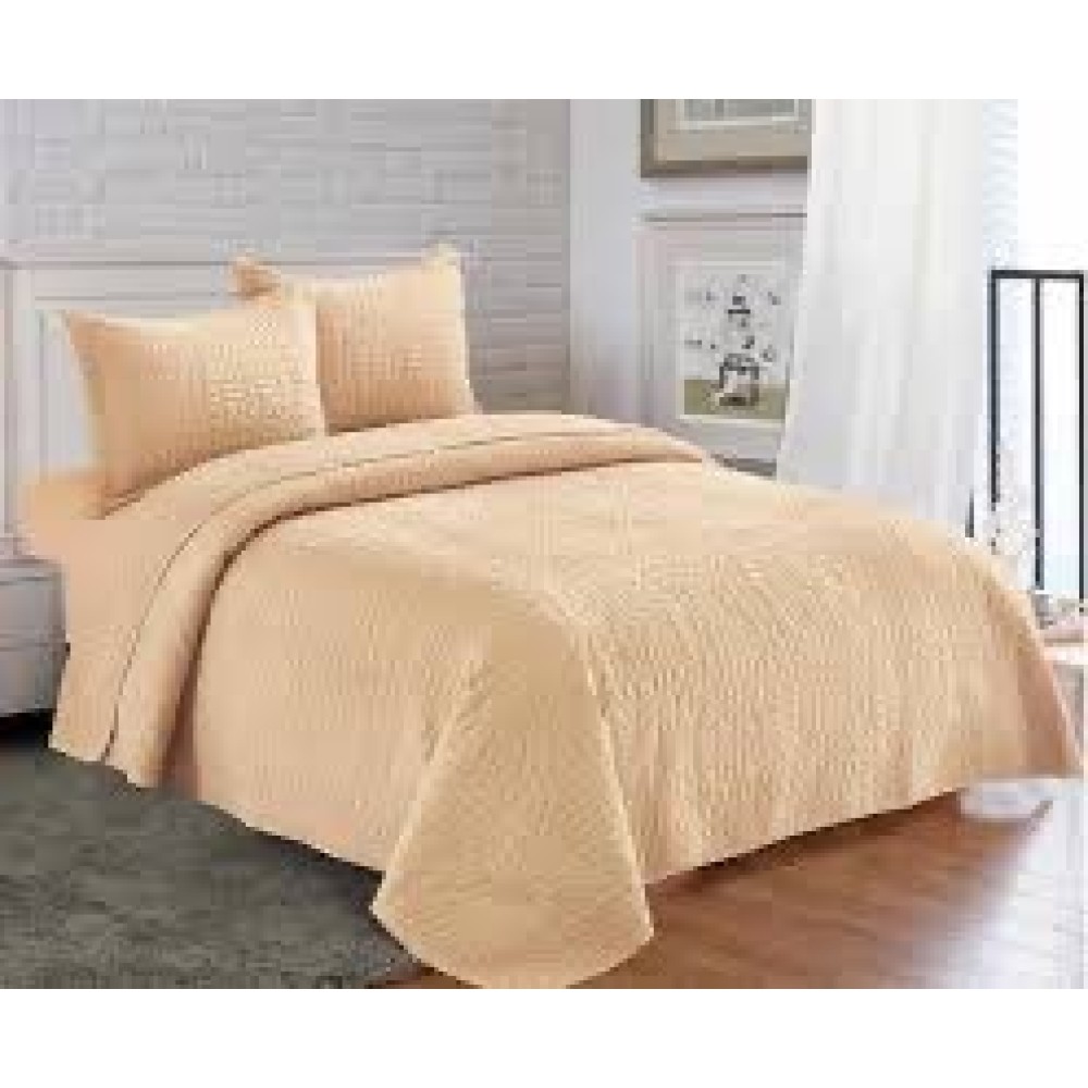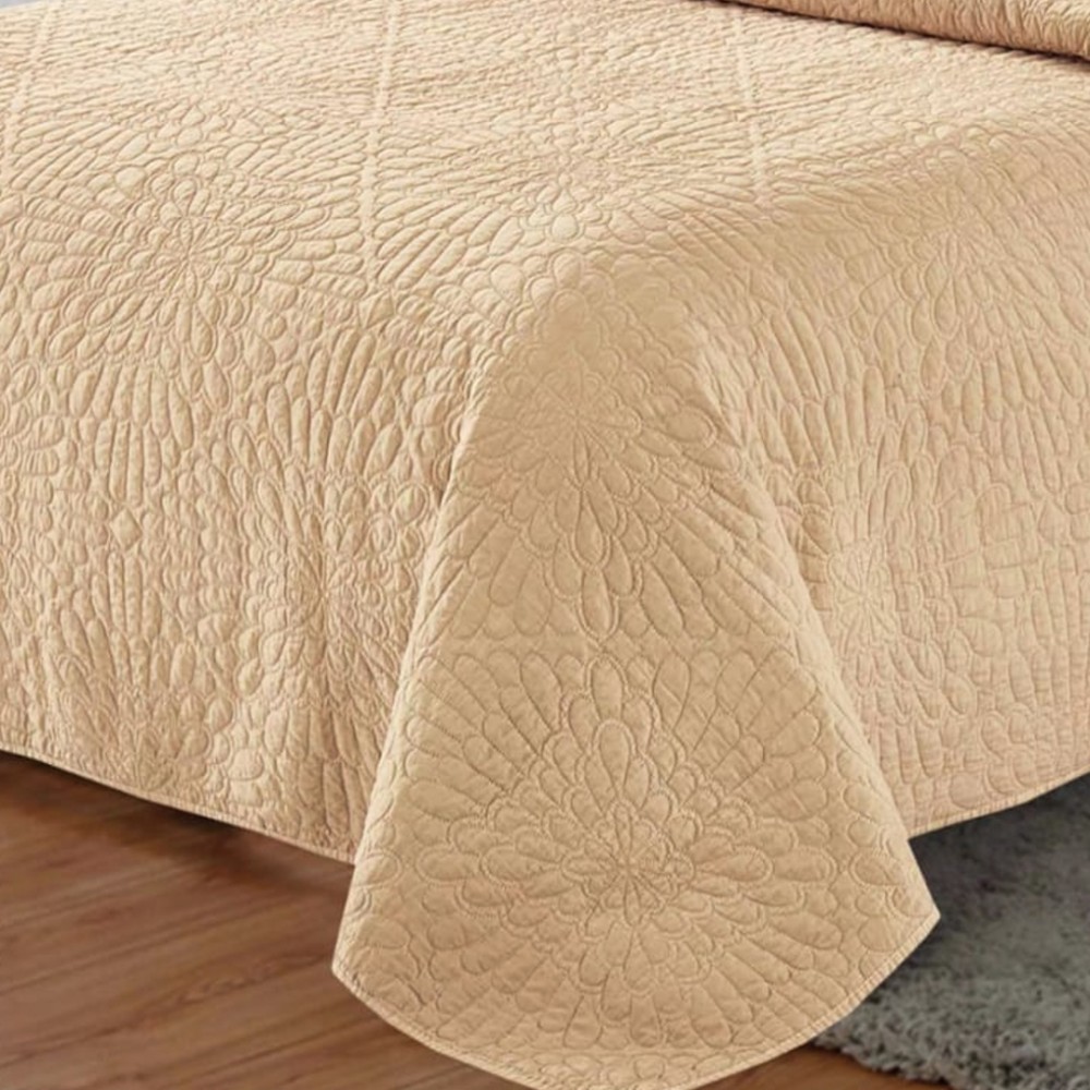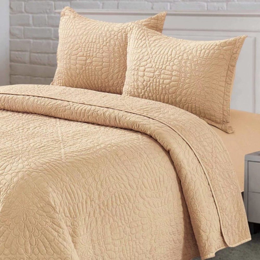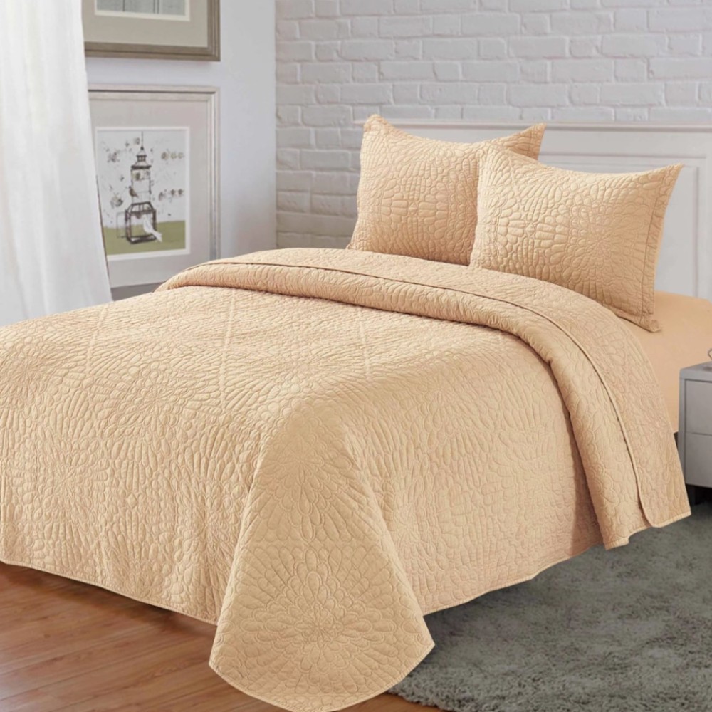 Cuvertură Matlasată, Pat Dublu, 230x250 cm, 3 Piese, Bumbac Satinat Superior, 2 Fețe de Pernă 50x70 cm, Bej Roze, Casa Minunata, cod produs: INS-CVU05