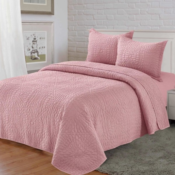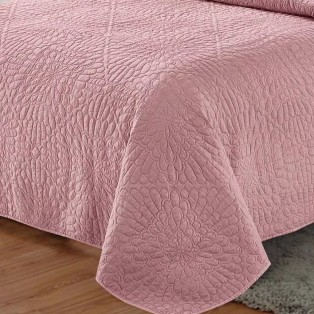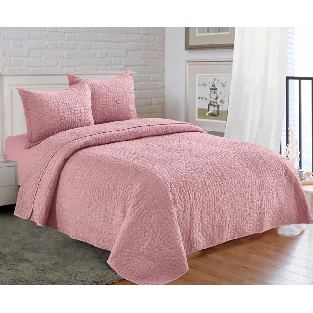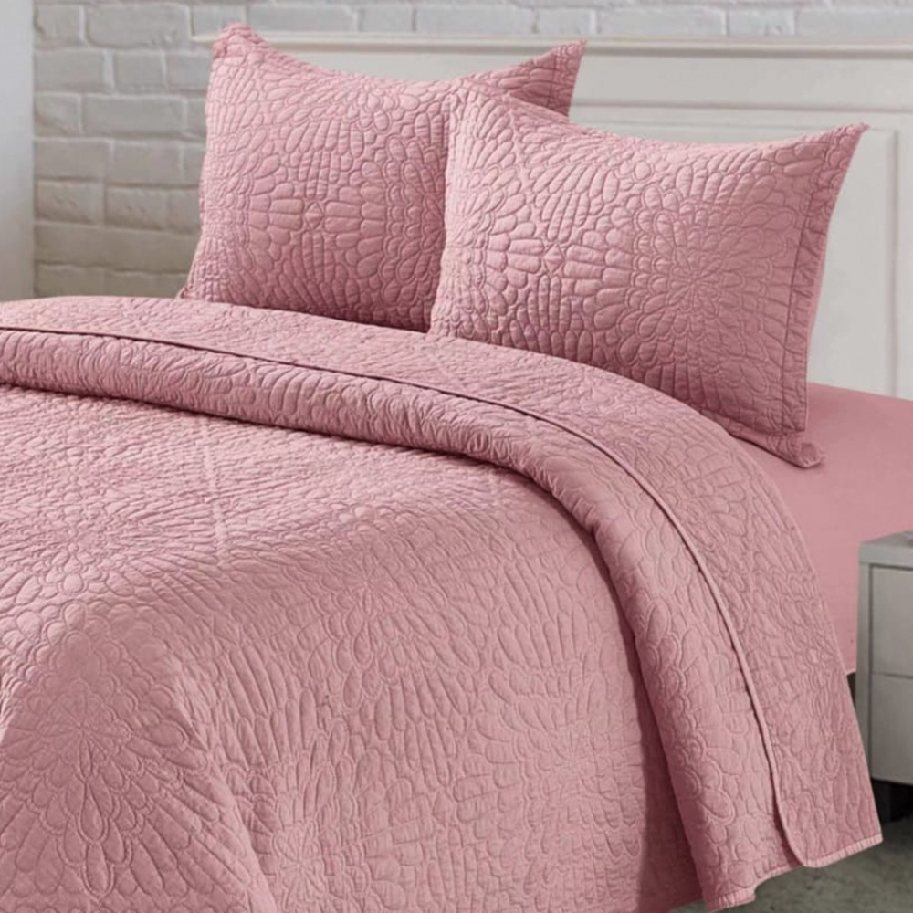 Cuvertură Matlasată, Pat Dublu, 230x250 cm, 3 Piese, Bumbac Satinat Superior, 2 Fețe de Pernă 50x70 cm, Roz, Casa Minunata, cod produs: INS-CVU06