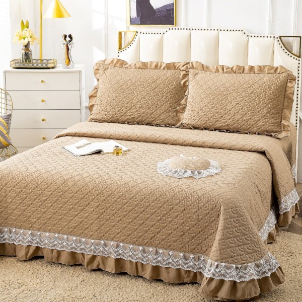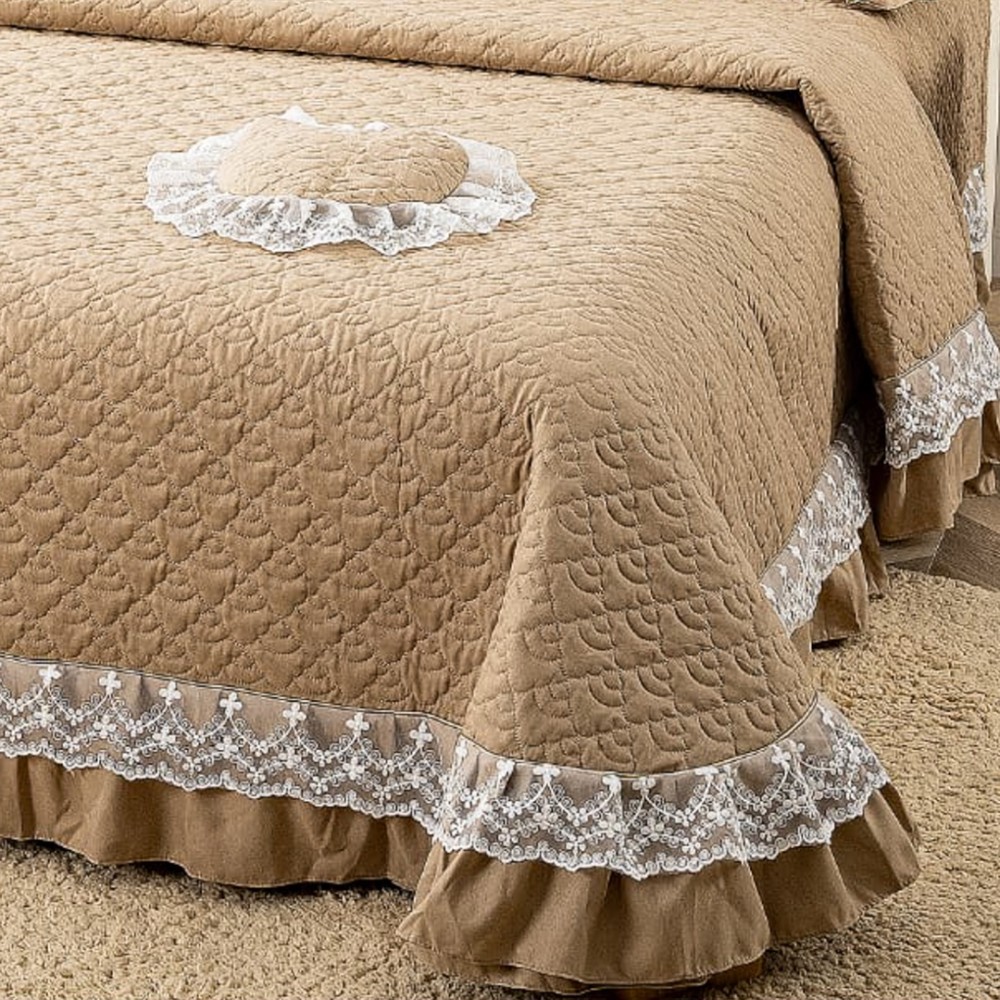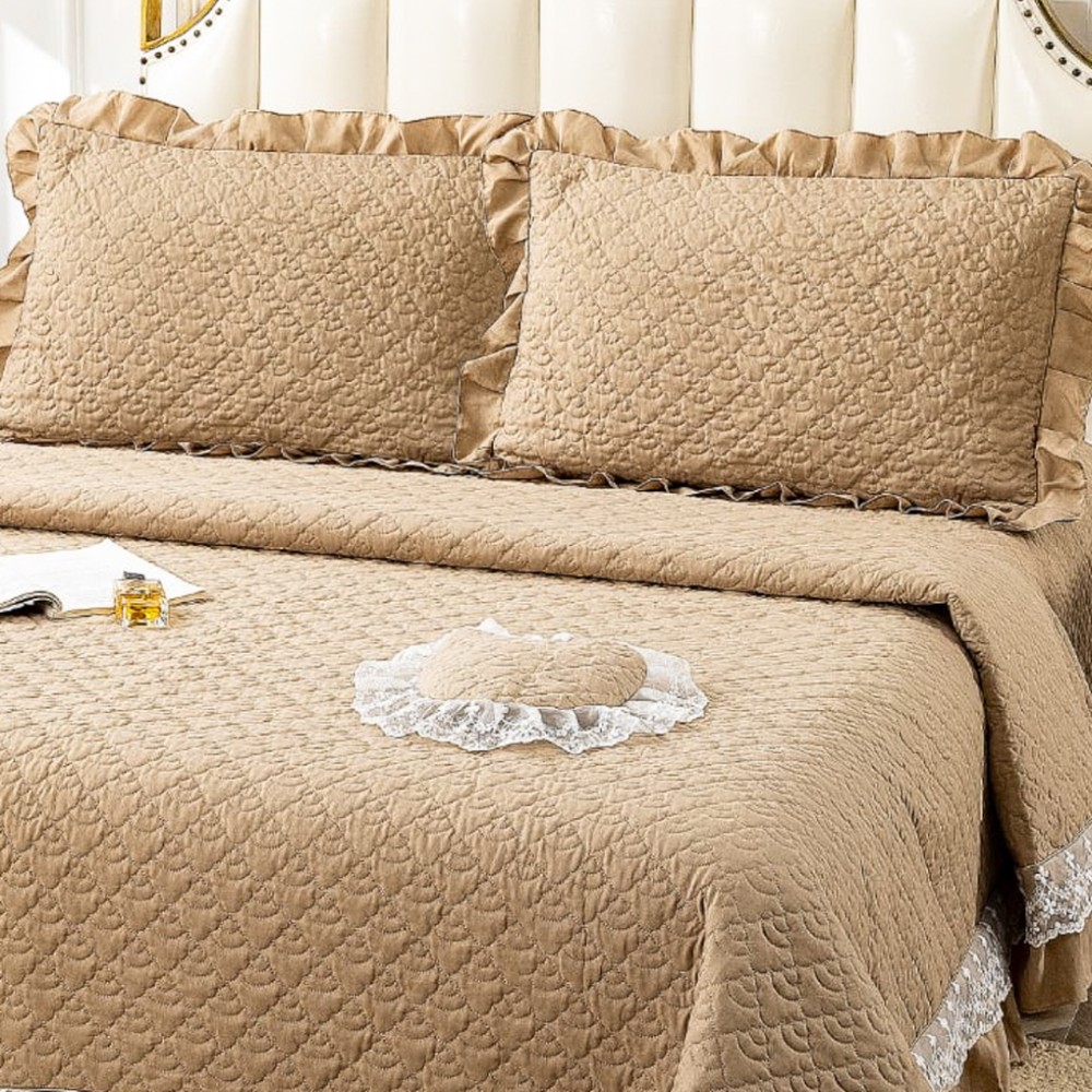 Cuvertură matlasată din bumbac finet cu volănașe și dantelă Chantilly – Eleganță și confort pentru dormitorul tău