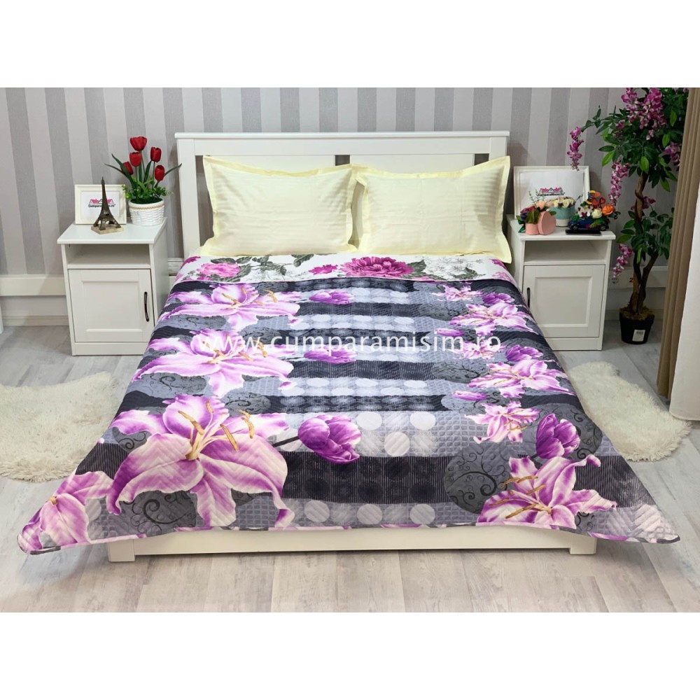 Cuvertura matlasata pentru pat dublu cu doua fete, 210x210, cod CVI26, Casa Sabry