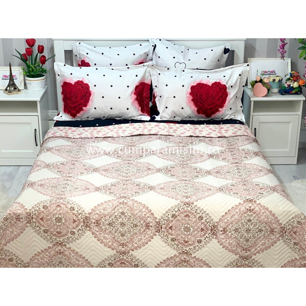 Cuvertura matlasata pentru pat dublu cu doua fete, 210x210, cod CVI38, Casa Sabry