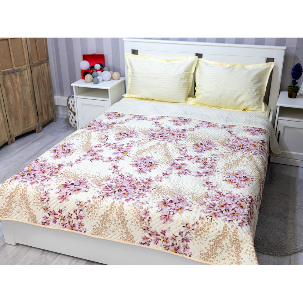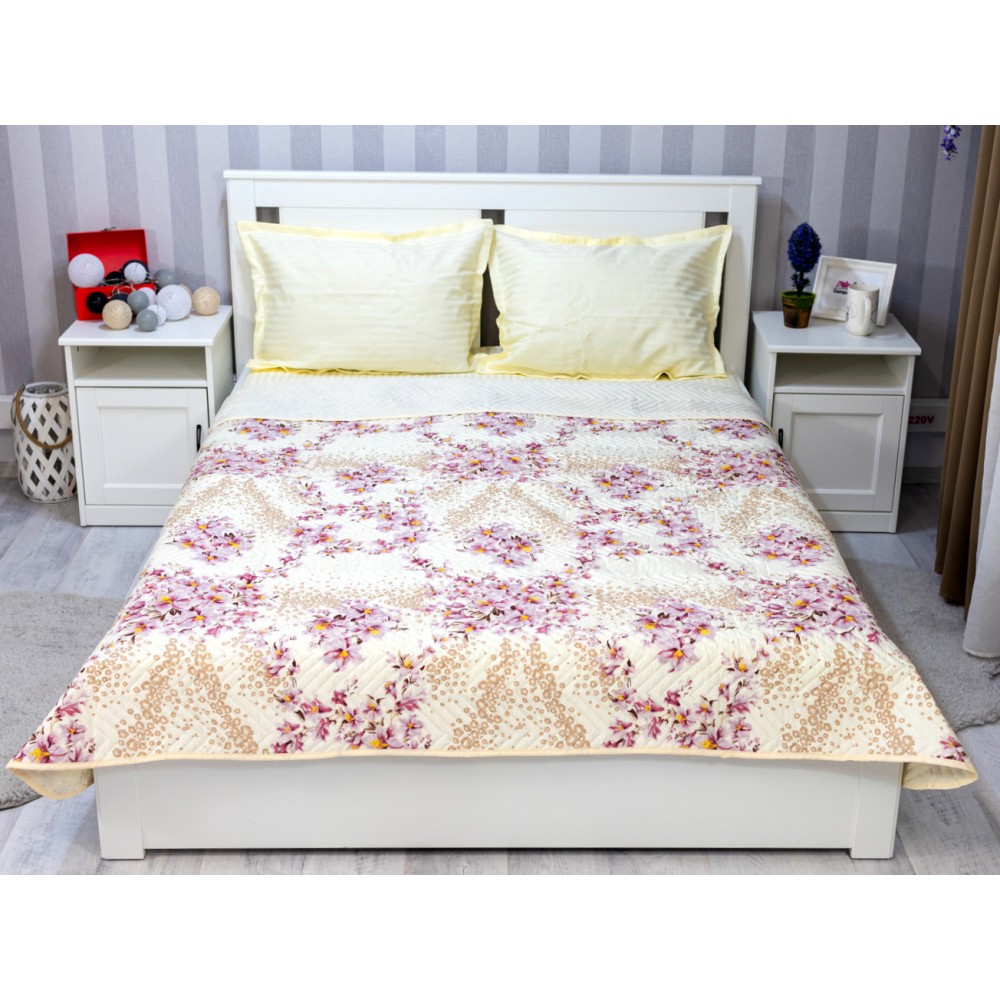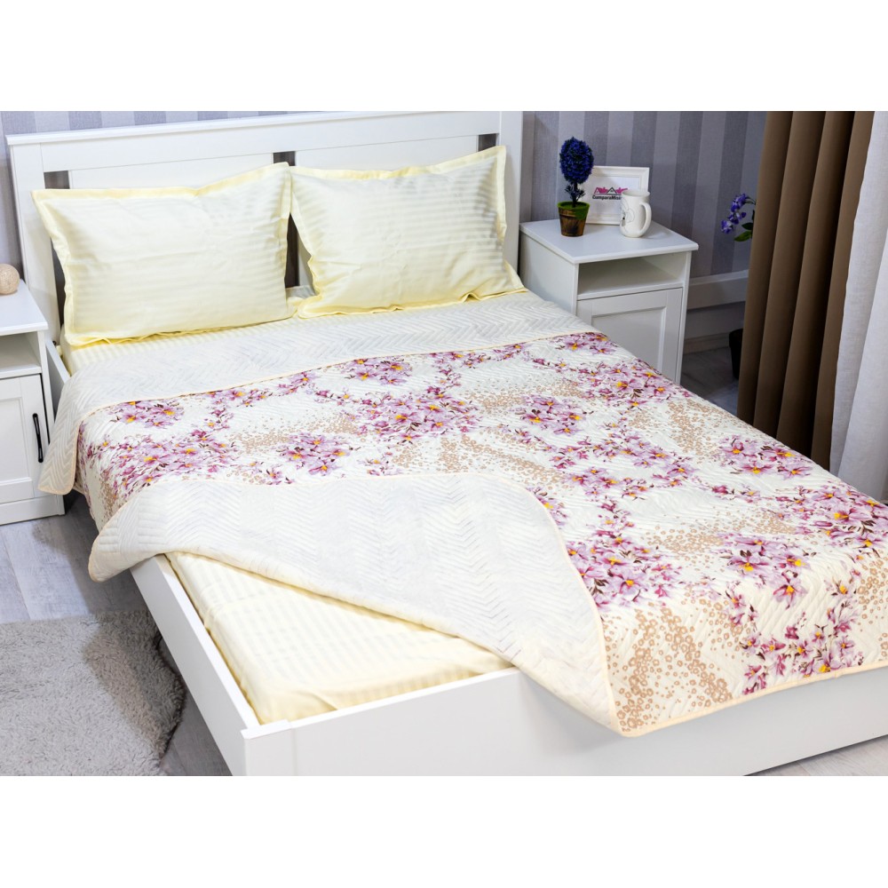 Cuvertura matlasata, confectionata din microfibra soft touch, cu umplutura din vatelina siliconica antialergenica.