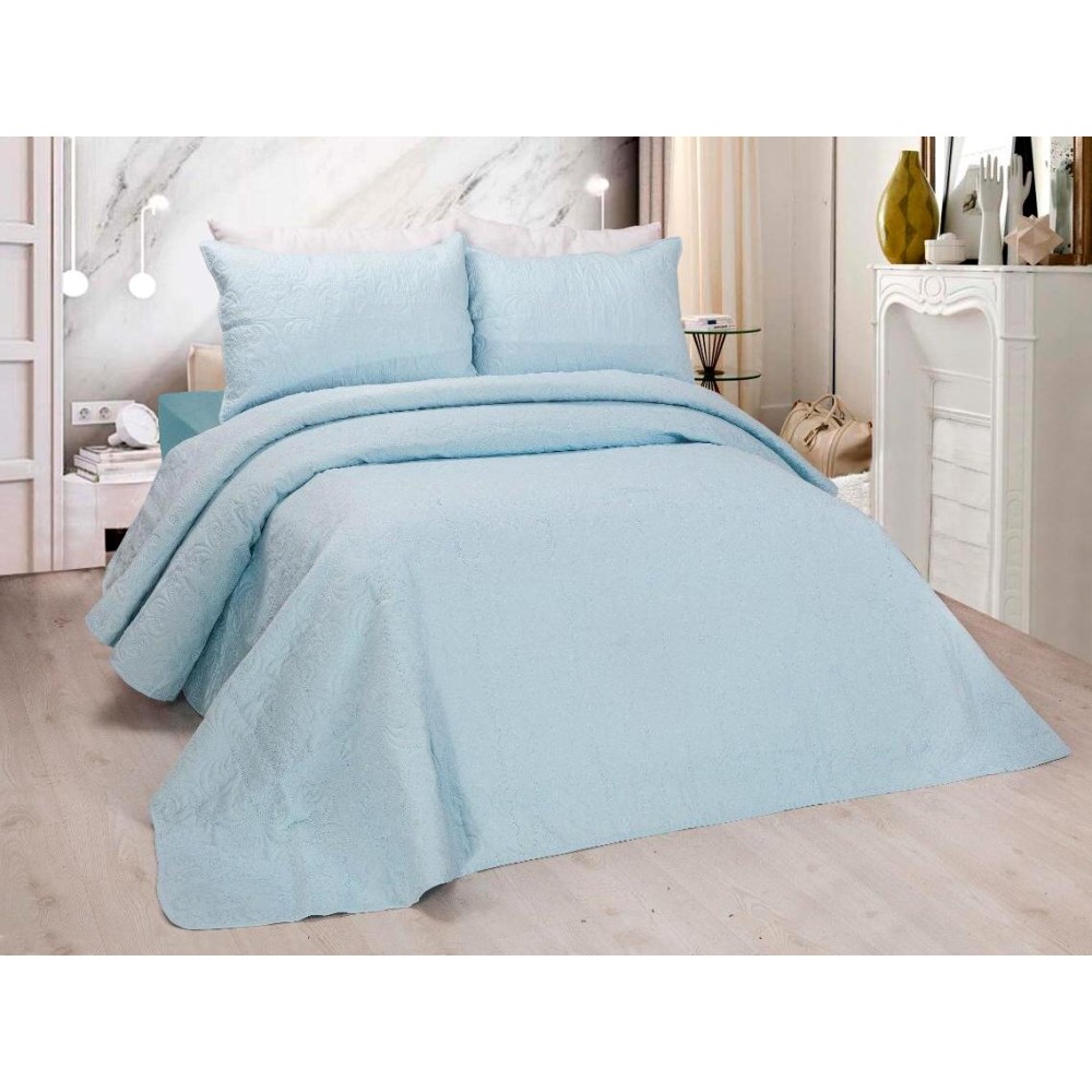 Cuvertura matlasata ultralux, pentru pat dublu, 220x240cm si 2 fete de perne 50x70, Baby blue, Casa Sabry, cod produs: SBR311