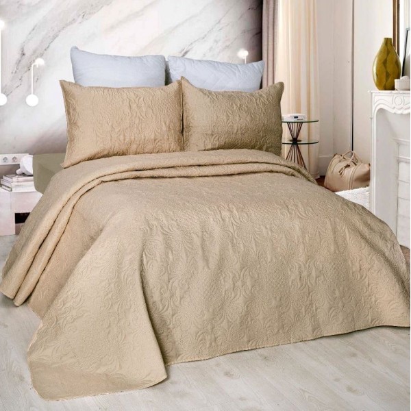 Cuvertura matlasata ultralux, pentru pat dublu, 220x240cm si 2 fete de perne 50x70, Bej, Casa Sabry, cod produs: SBR312