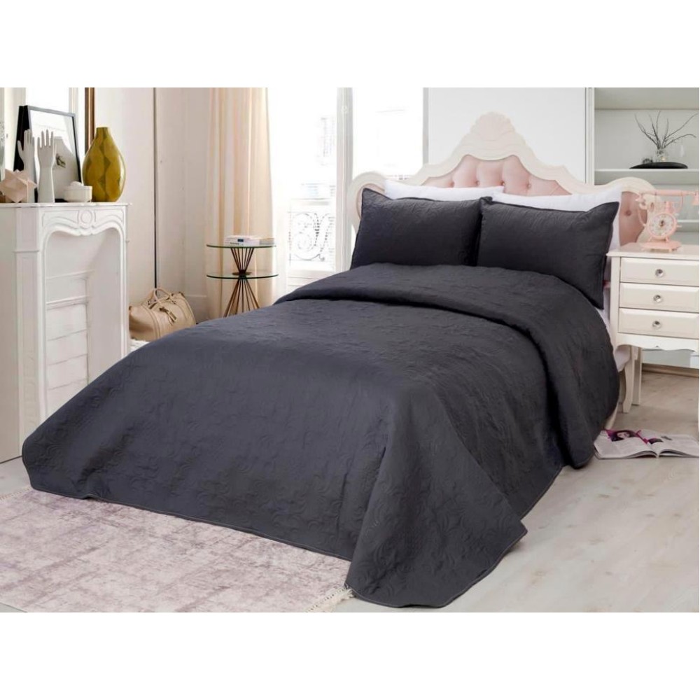 Cuvertura matlasata ultralux, gri antracit pentru pat dublu 220x240cm si 2 fete de perne 50x70, Casa Sabry, cod produs: SBR-CVU-08