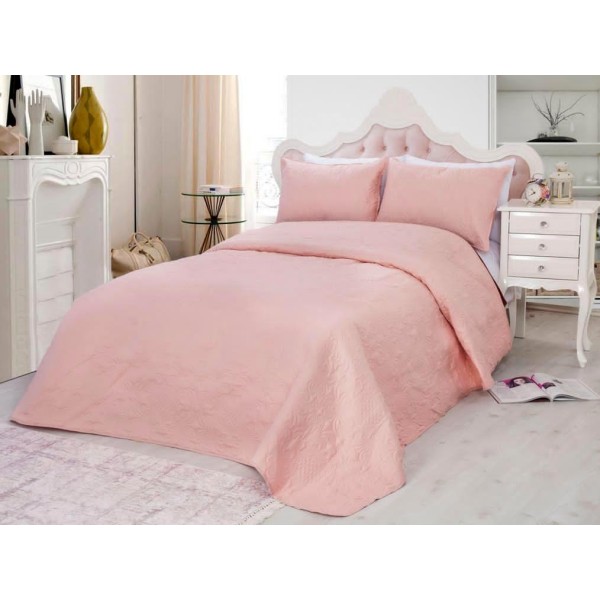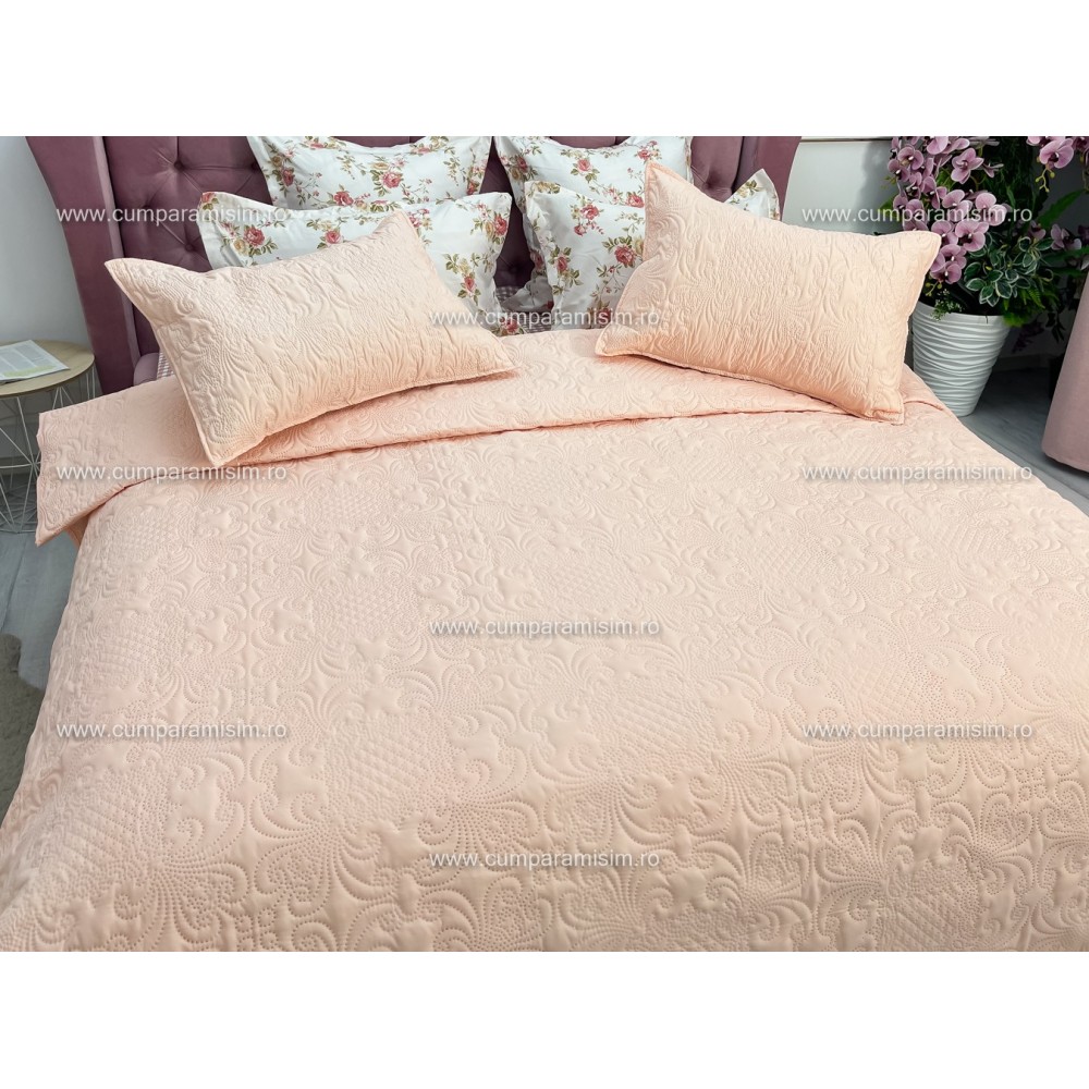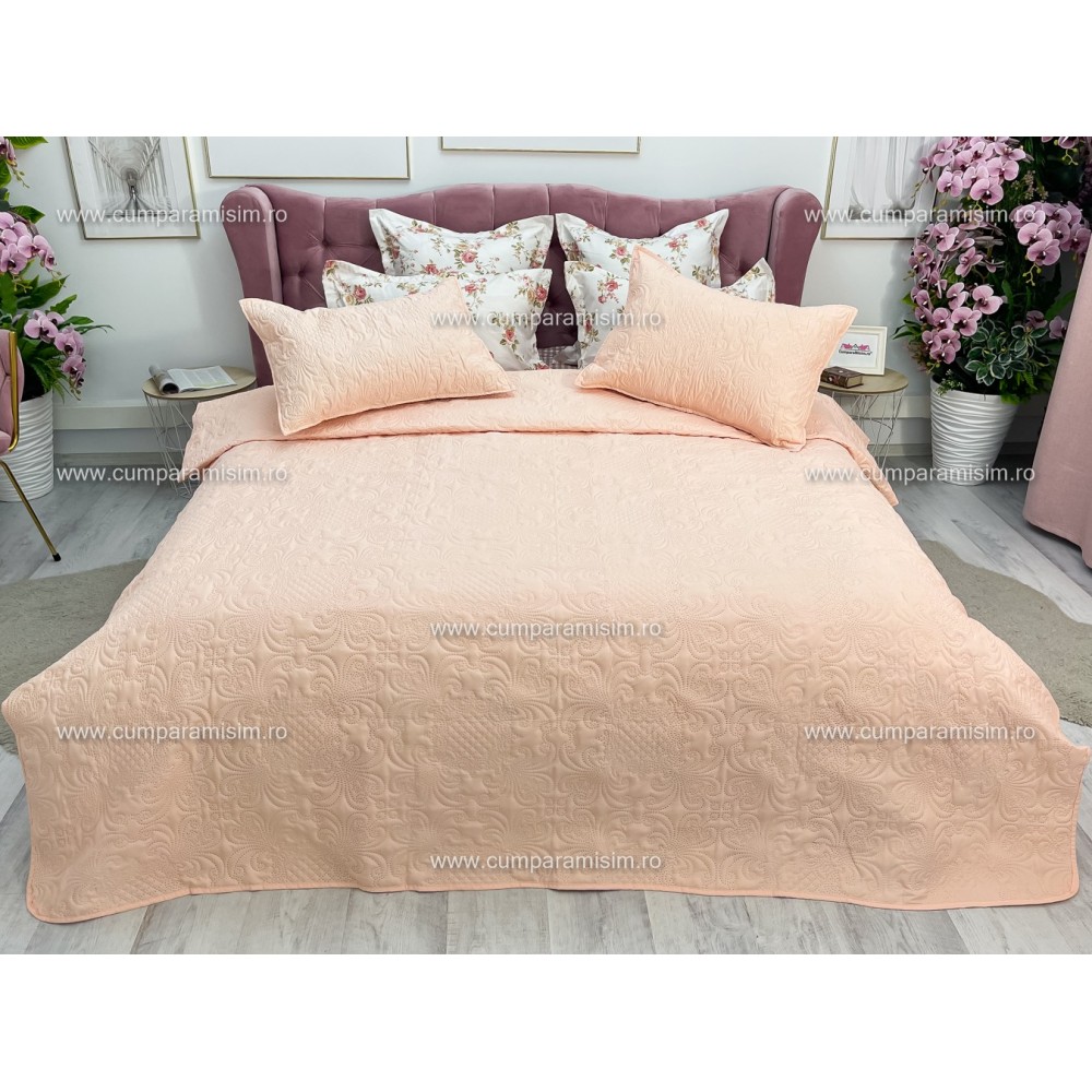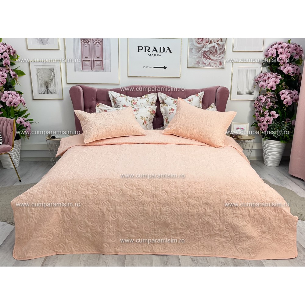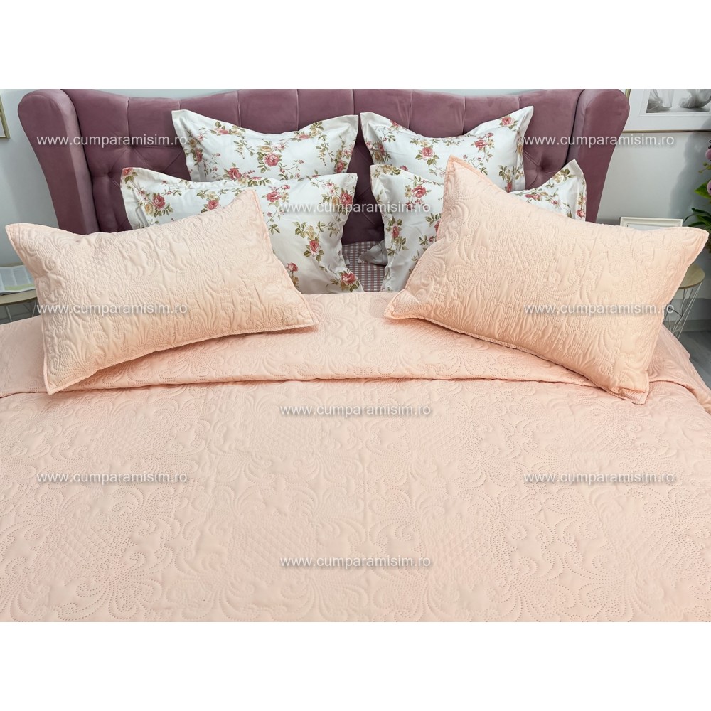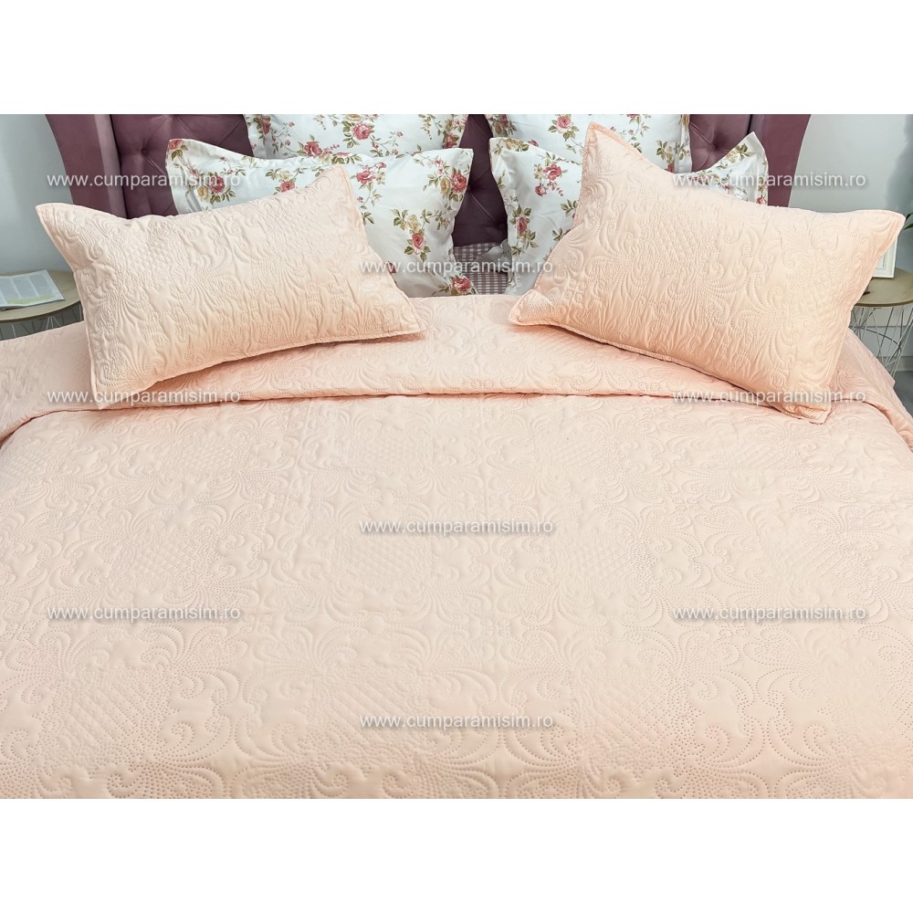 Cuvertura matlasata ultralux, somon, pentru pat dublu 220x240cm si 2 fete de perne 50x70, Casa Sabry, cod produs: SBR-CVU-20