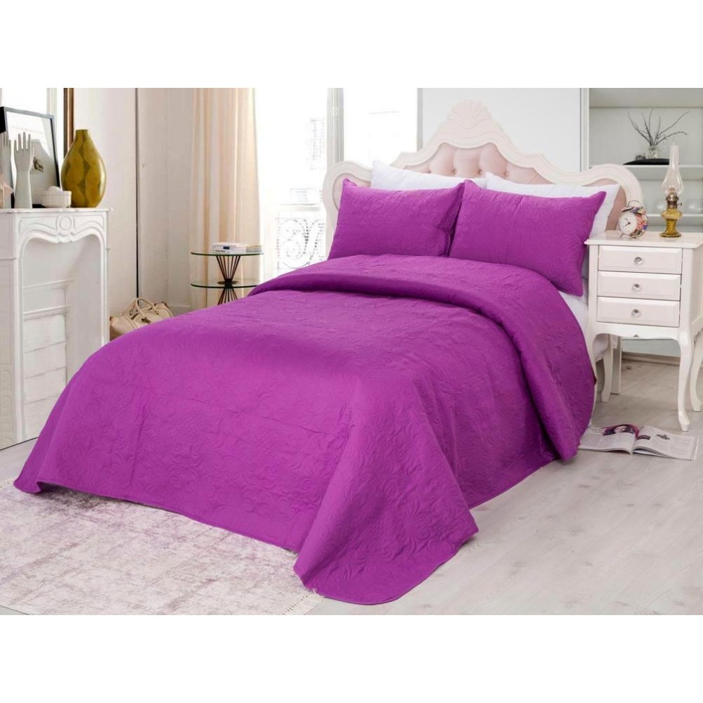 Cuvertura matlasata ultralux, pentru pat dublu, 220x240cm si 2 fete de perne 50x70, Mov intens, Casa Sabry, cod produs: SBR310