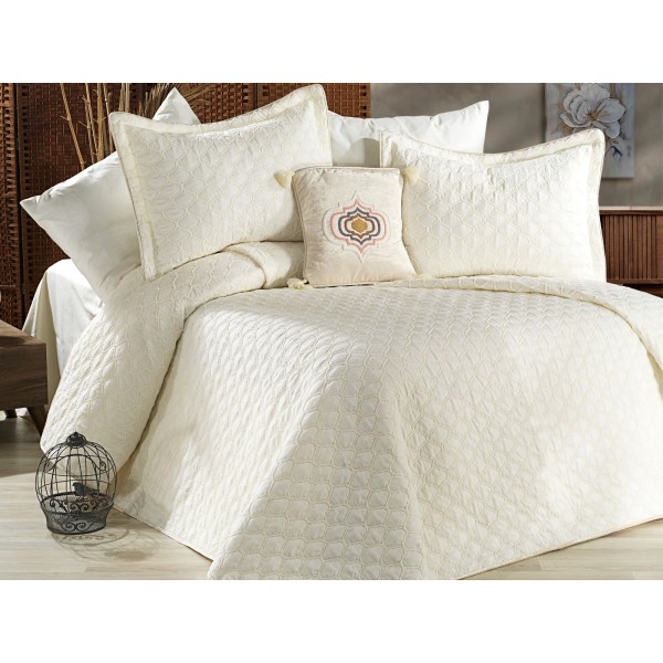 Cuvertura MELODIE pentru pat dublu cu smocuri brodate si 3 fete de perna, Alb, Casa Sabry, cod produs: CVS46