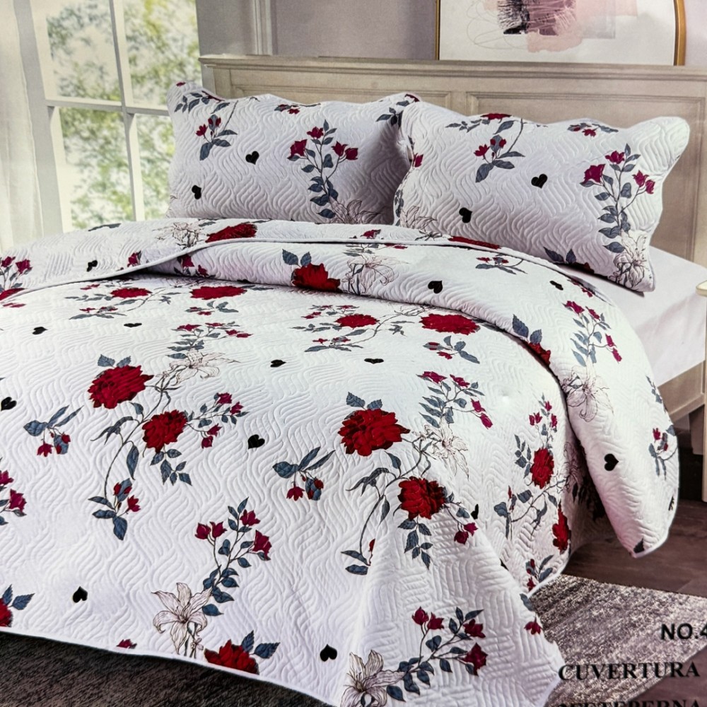 Cuvertură Pat Dublu, 3 Piese, Bumbac 100% Imprimat – Calitate Premium, cu Imprimeu Durabil, cod CSA-CV03, East Romania