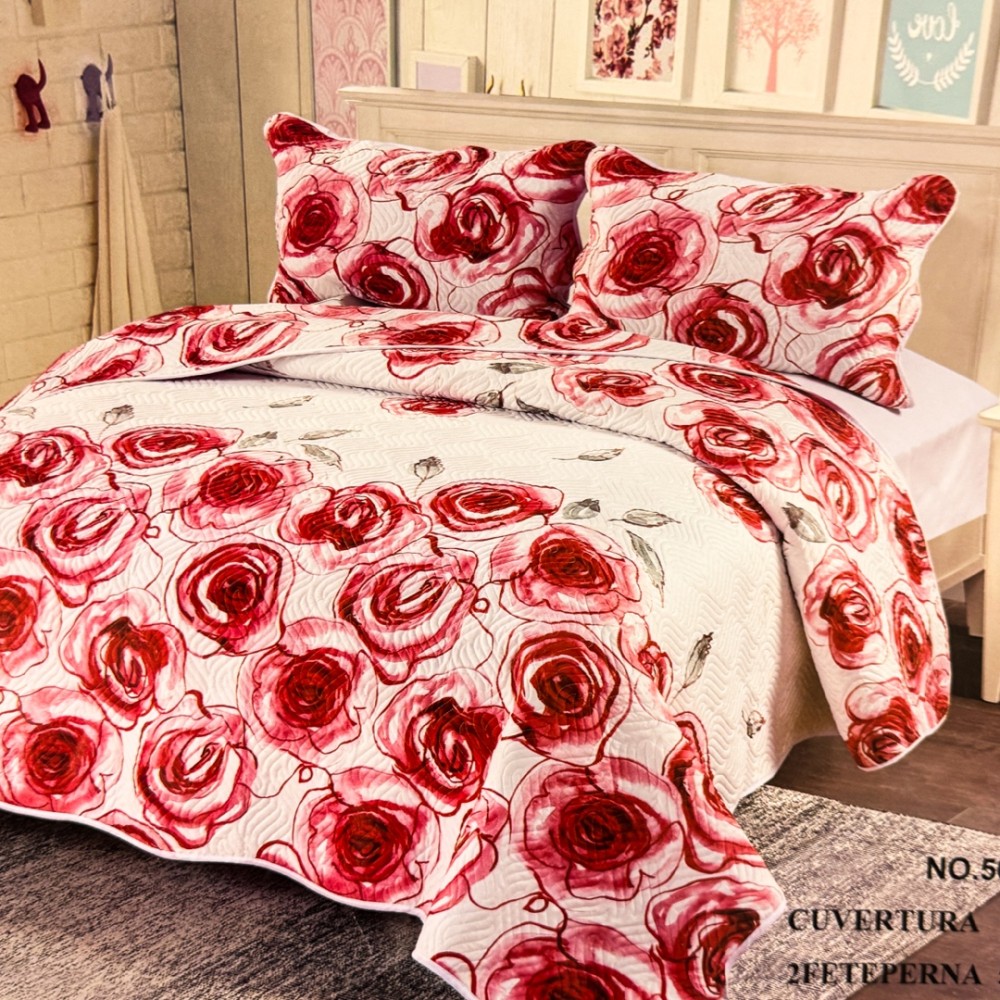 Cuvertură Pat Dublu, 3 Piese, Bumbac 100% Imprimat – Calitate Premium, cu Imprimeu Durabil, cod CSA-CV10, East Romania