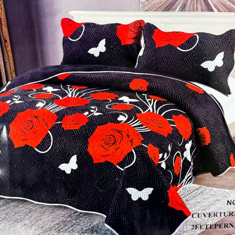 Cuvertură Pat Dublu, 3 Piese, Bumbac 100% Imprimat – Calitate Premium, cu Imprimeu Durabil, cod CSA-CV18, East Romania