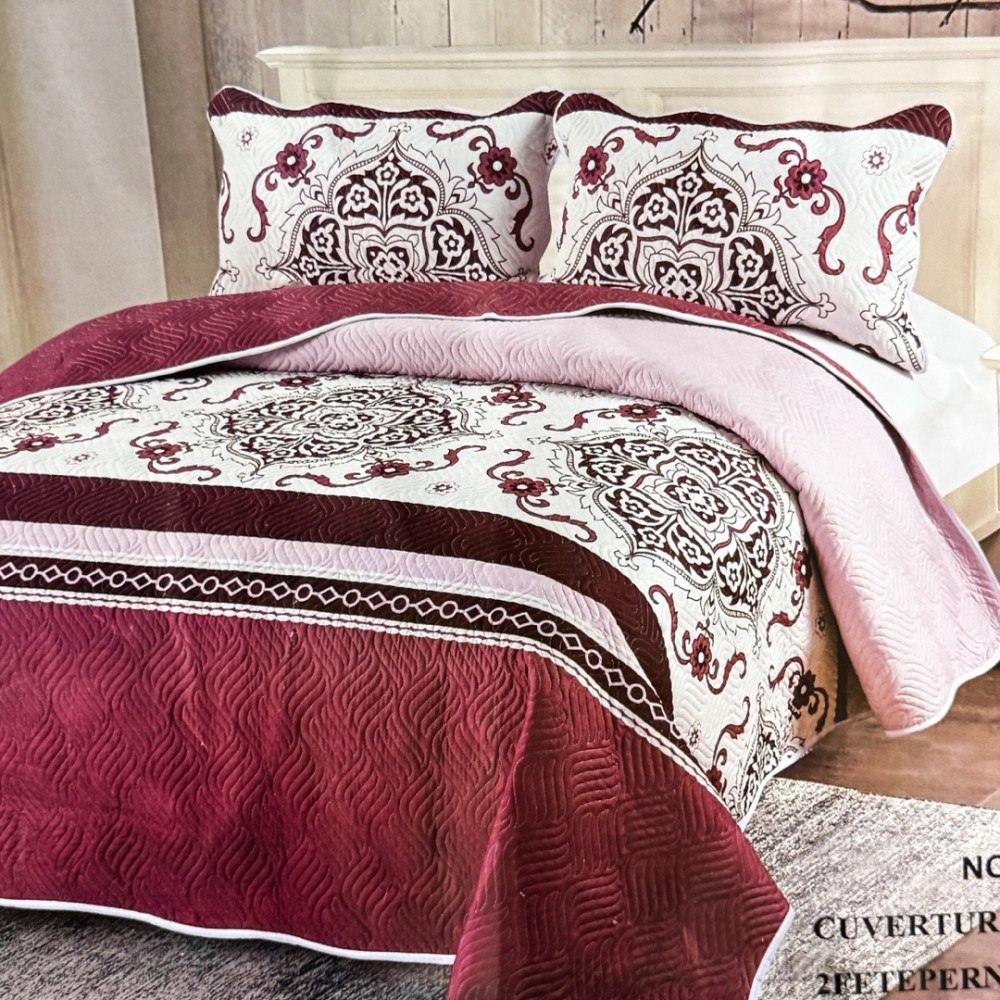 Cuvertură Pat Dublu, 3 Piese, Bumbac 100% Imprimat – Calitate Premium, cu Imprimeu Durabil, cod CSA-CV21, East Romania