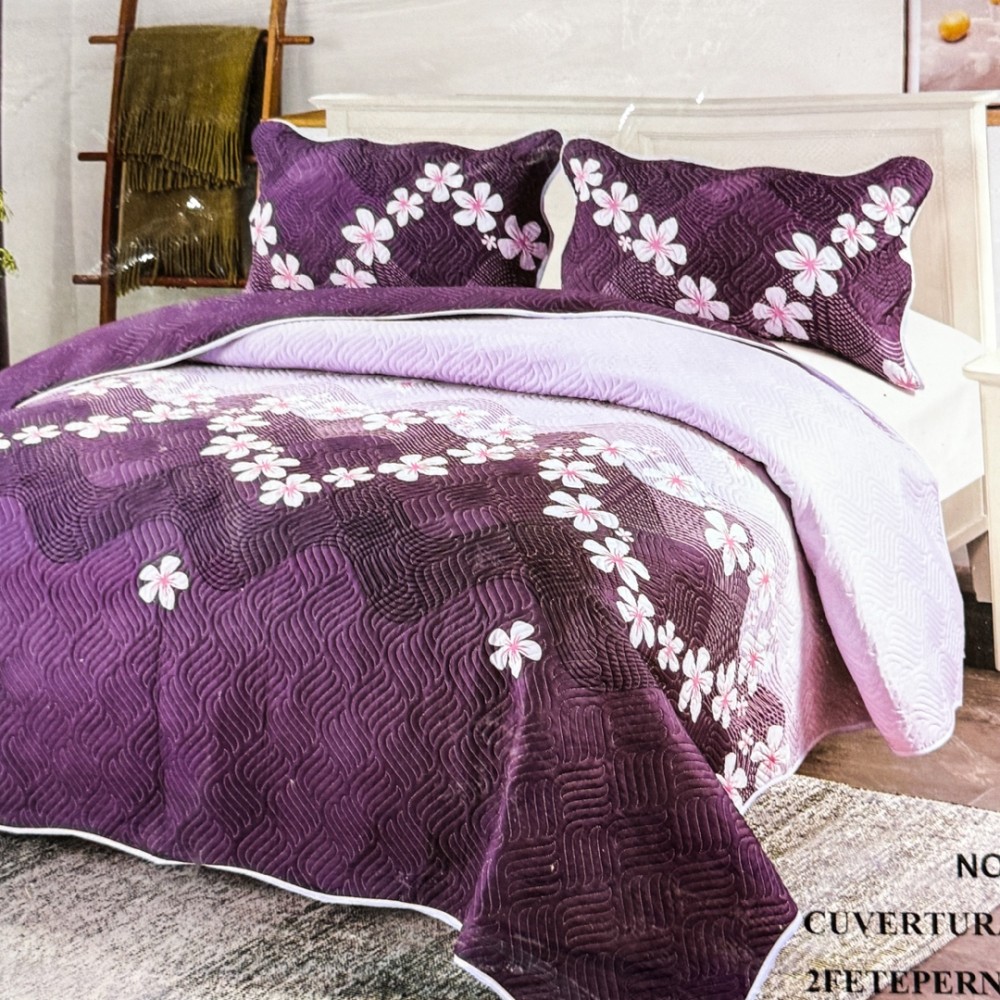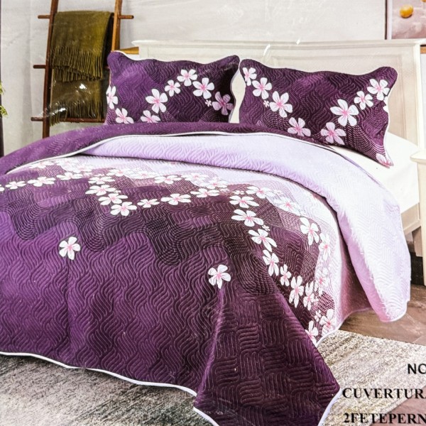 Cuvertură Pat Dublu, 3 Piese, Bumbac 100% Imprimat – Calitate Premium, cu Imprimeu Durabil, cod CSA-CV28, East Romania