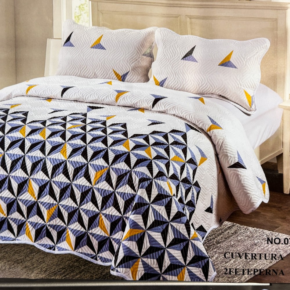 Cuvertură Pat Dublu, 3 Piese, Bumbac 100% Imprimat – Calitate Premium, cu Imprimeu Durabil, cod CSA-CV43, East Romania