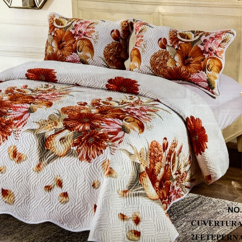 Cuvertură Pat Dublu, 3 Piese, Bumbac 100% Imprimat – Calitate Premium, cu Imprimeu Durabil, cod CSA-CV46, East Romania