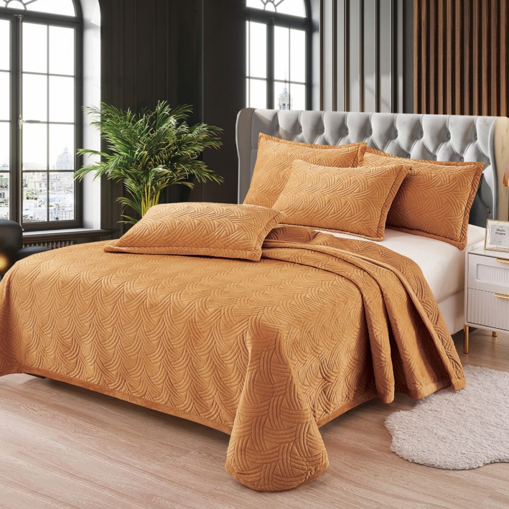 Cuvertură de lux, pentru pat 2 persoane, din catifea, matlasata.