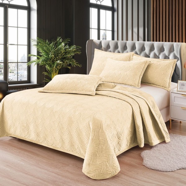 Cuvertura pat dublu, 3 piese, Catifea Matlasata 230x250cm + 2 fete de perne 50x70cm, Ivoire, CumparaMisim, cod produs: YAC102