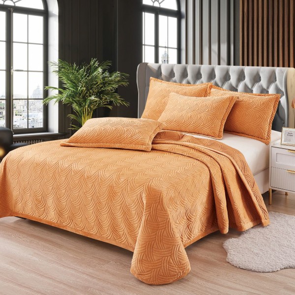 Cuvertura pat dublu, 3 piese, Catifea Matlasata 230x250cm + 2 fete de perne 50x70cm, camel, CumparaMisim, cod produs: YAC104