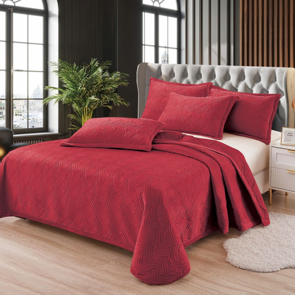Cuvertura pat dublu, 3 piese, Catifea Matlasata 230x250cm + 2 fete de perne 50x70cm, grena, CumparaMisim, cod produs: YAC101