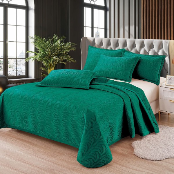 Cuvertura pat dublu, 3 piese, Catifea Matlasata 230x250cm + 2 fete de perne 50x70cm, verde smarald, CumparaMisim, cod produs: YAC106