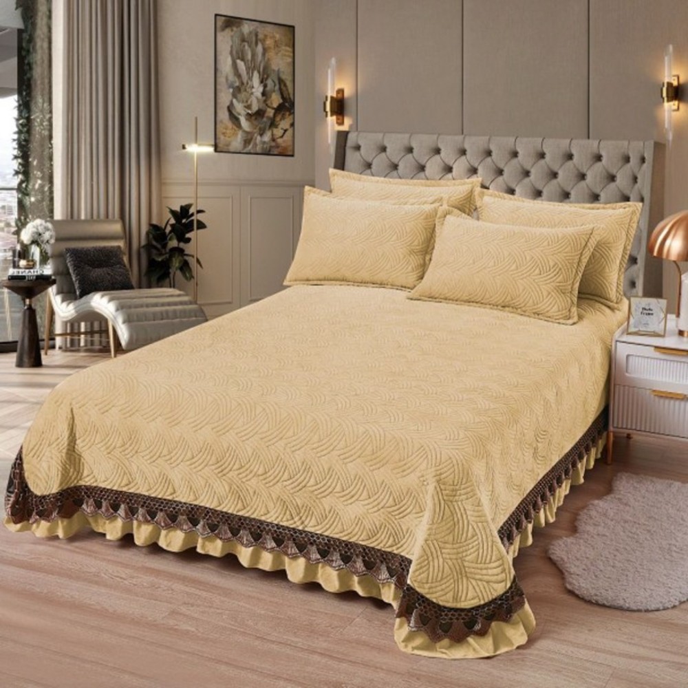 Cuvertura pat dublu, 3 piese, Catifea Matlasata 230x250cm + 2 fete de perne 50x70cm, Crem, CumparaMisim, cod produs: YAC109