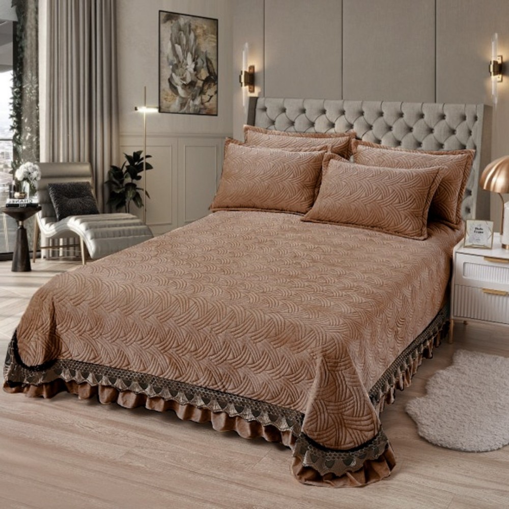 Cuvertura pat dublu, 3 piese, Catifea Matlasata 230x250cm + 2 fete de perne 50x70cm, Maro, CumparaMisim, cod produs: YAC110