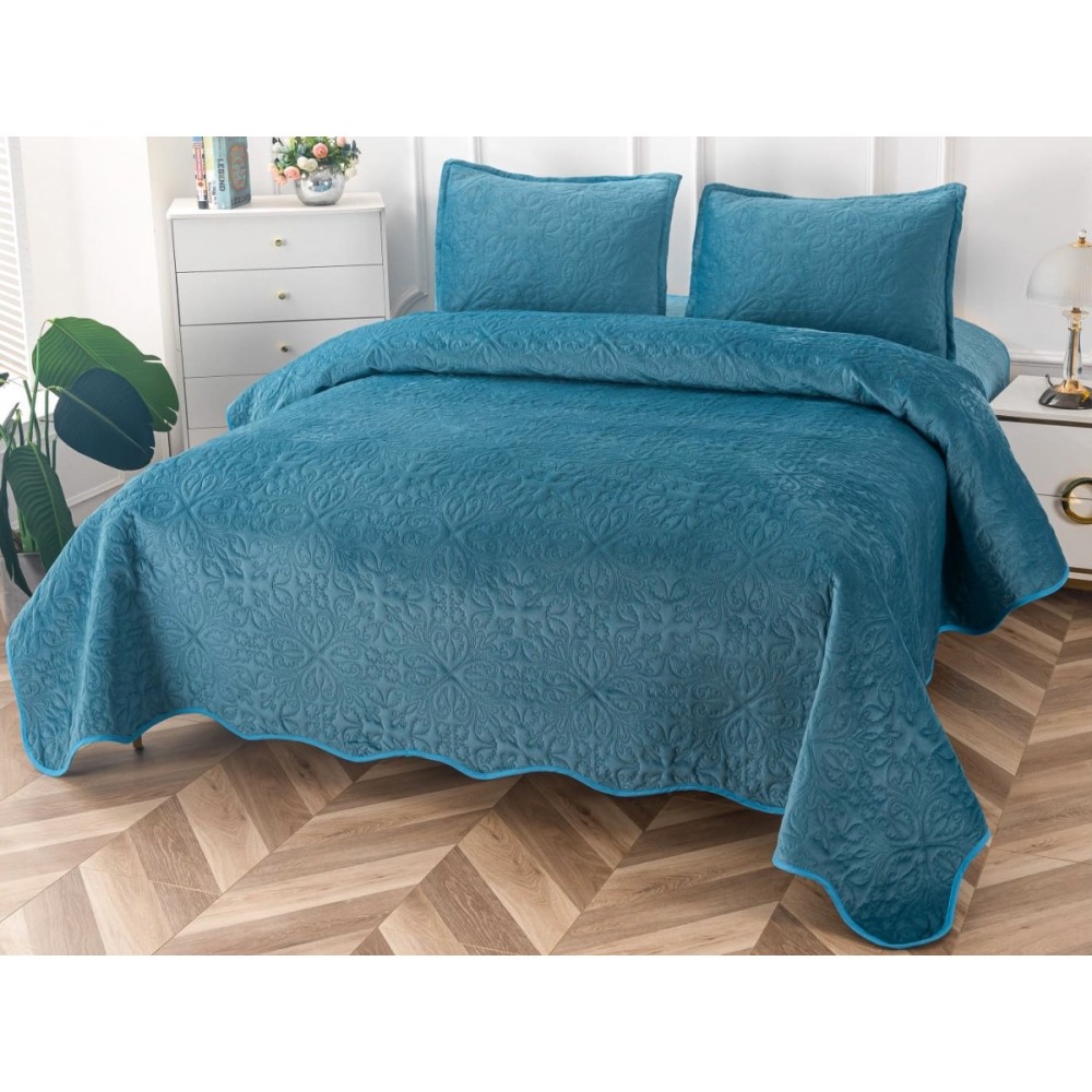 Cuvertura pat dublu, 3 piese, Catifea Matlasata, 230x250cm, Albastru, Alti producatori, cod produs: SKV1