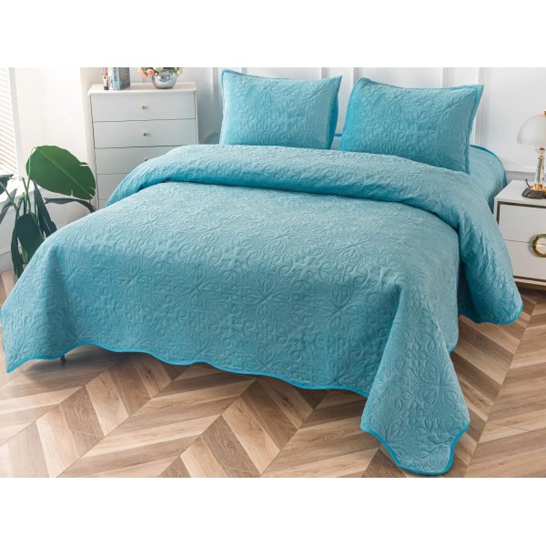 Cuvertura pentru pat dublu confectionata din Catifea, cu model realizat din cusatura, dar si din imprimeul deosebit. Cuvertura este matlasata, avand dosul din bumbac satinat (80% bumbac, 20% poliester). Marginile lucrate cu atentie fiind finisate cu bordura pentru un plus de eleganta.