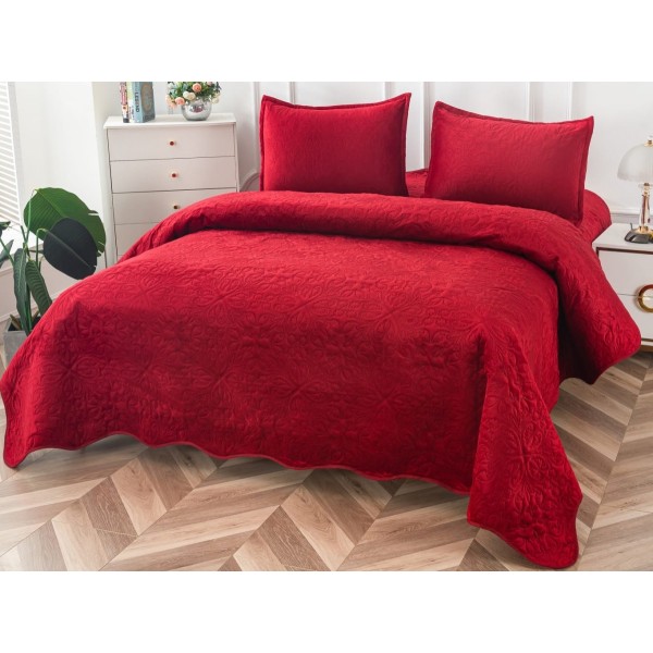 Cuvertura pat dublu, 3 piese, Catifea Matlasata, 230x250cm, Bordo, Alti producatori, cod produs: CVP402
