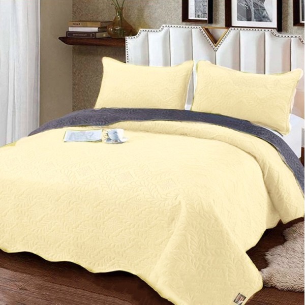 Cuvertura pat dublu, 3 piese, Catifea Matlasata, 230x250cm, Crem, Alti producatori, cod produs: SKK6