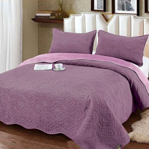 Cuvertura pat dublu, 3 piese, Catifea Matlasata, 230x250cm, Mov deschis, Alti producatori, cod produs: SKK10